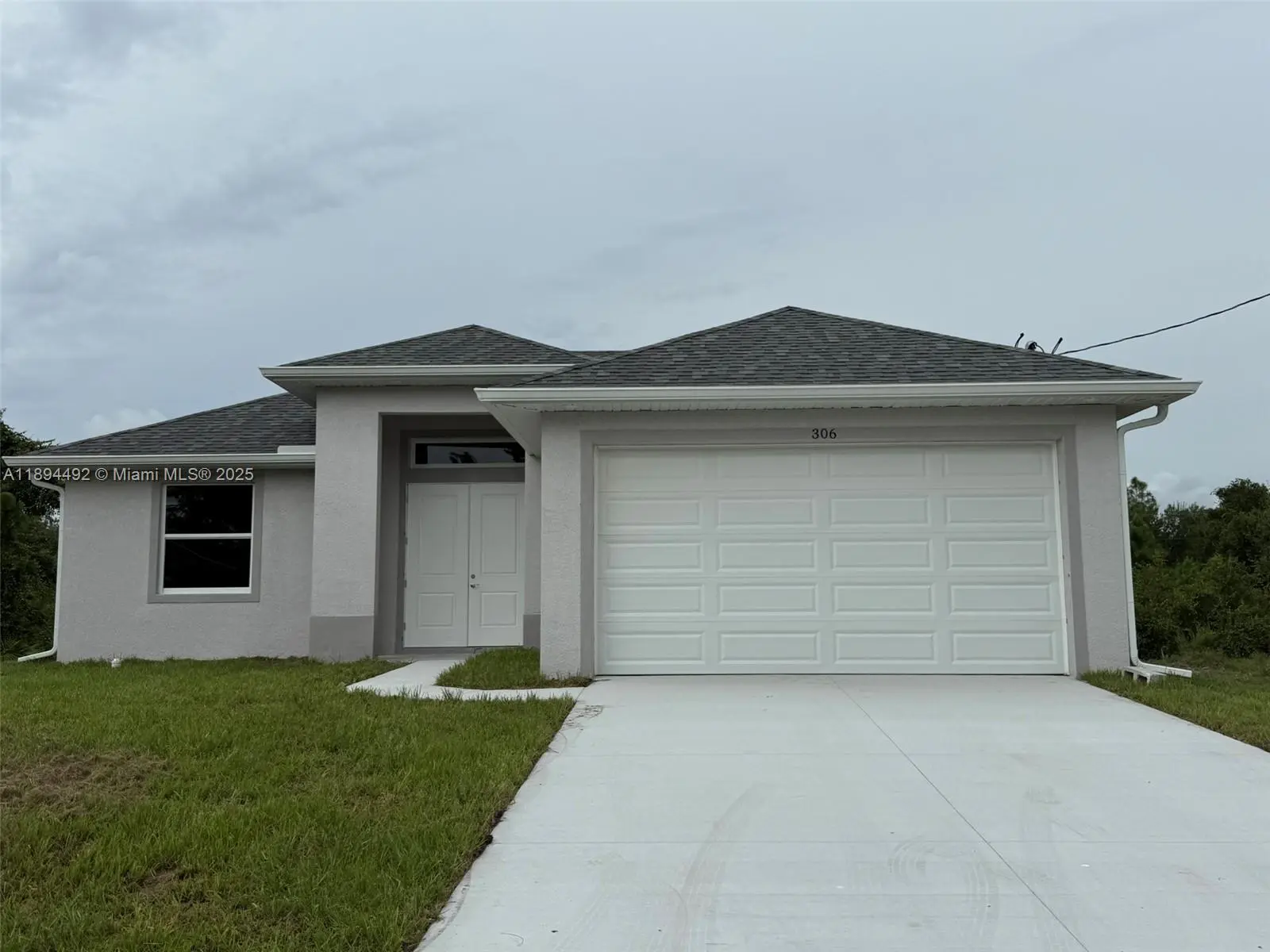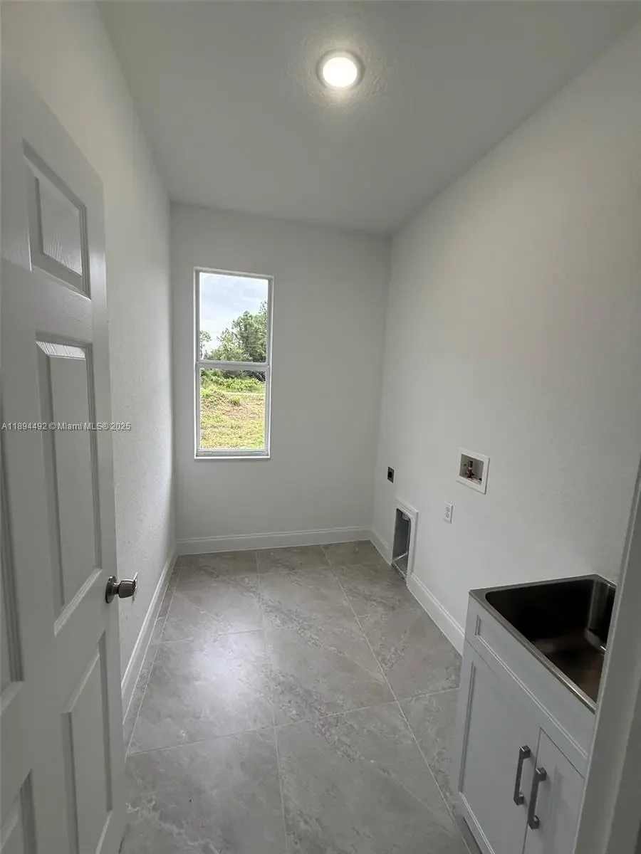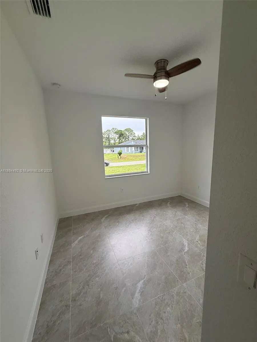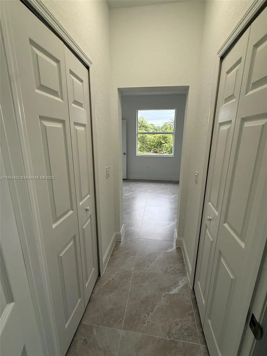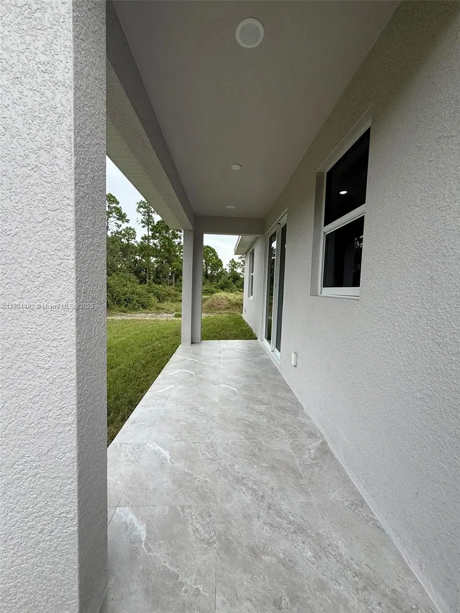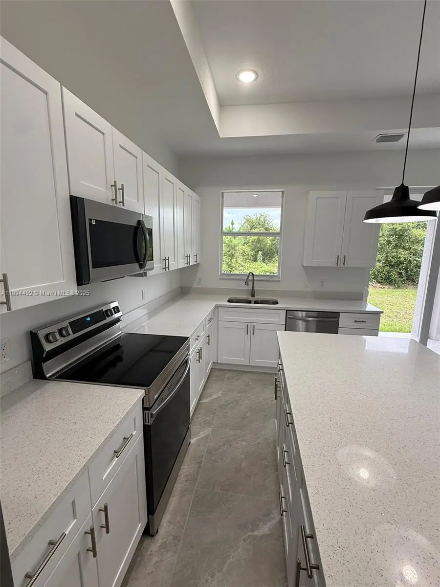 Stunning new construction – move-in ready 3-bedroom, 2-bath home with double garage and screened lanai in prime East Lehigh location. This bright, open-concept home features high ceilings with elegant step details, impact-resistant windows, and porcelain tile throughout. The kitchen offers quartz countertops, stainless steel appliances, and modern designer lighting. Each bedroom includes ceiling fans with lights. The master suite boasts dual walk-in closets and a spa-style bath with double sinks and a large walk-in shower. A spacious laundry room with utility sink adds convenience. Just 15 minutes to RSW Airport and FGCU, with easy access to Fort Myers, I-75, schools, shopping, and dining. Schedule your showing today!