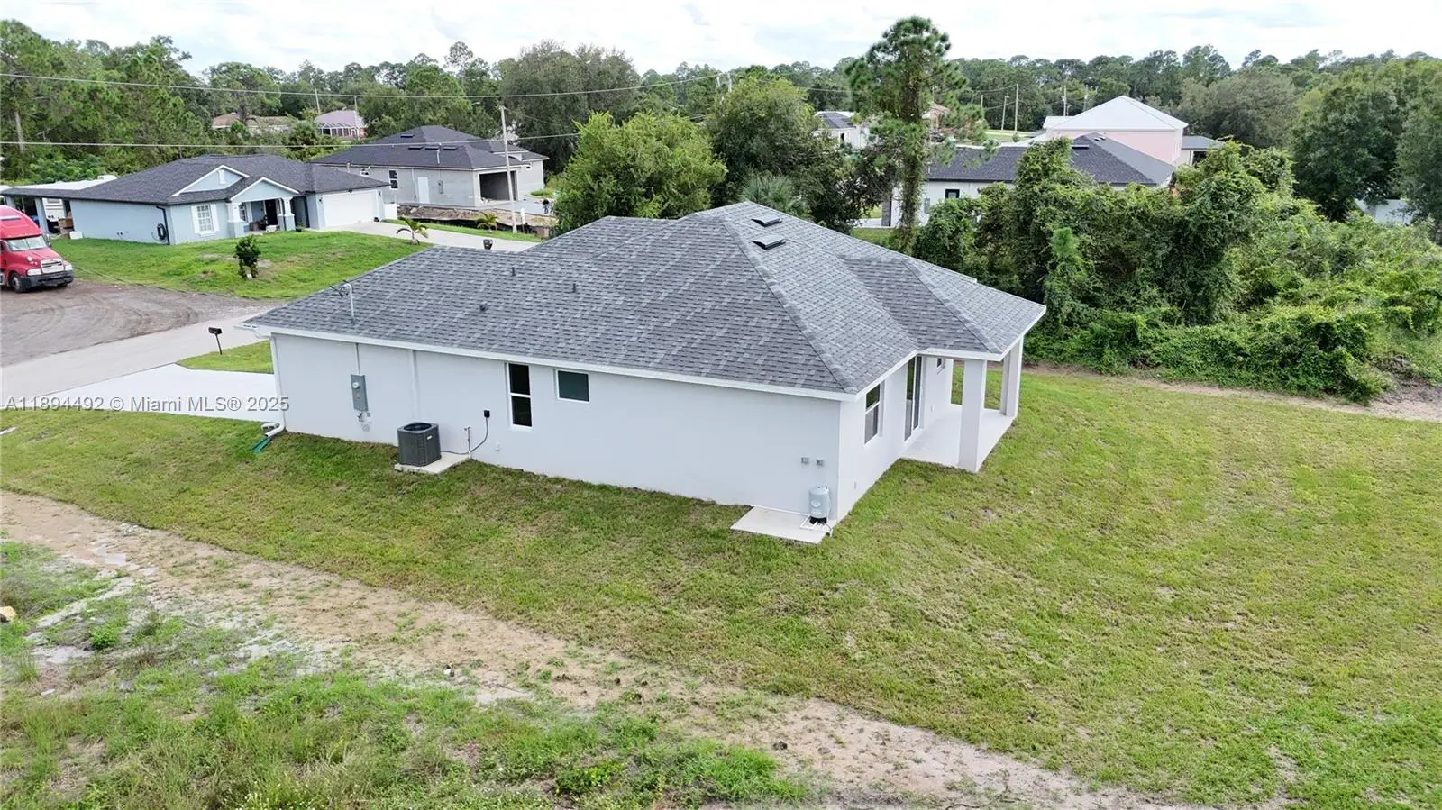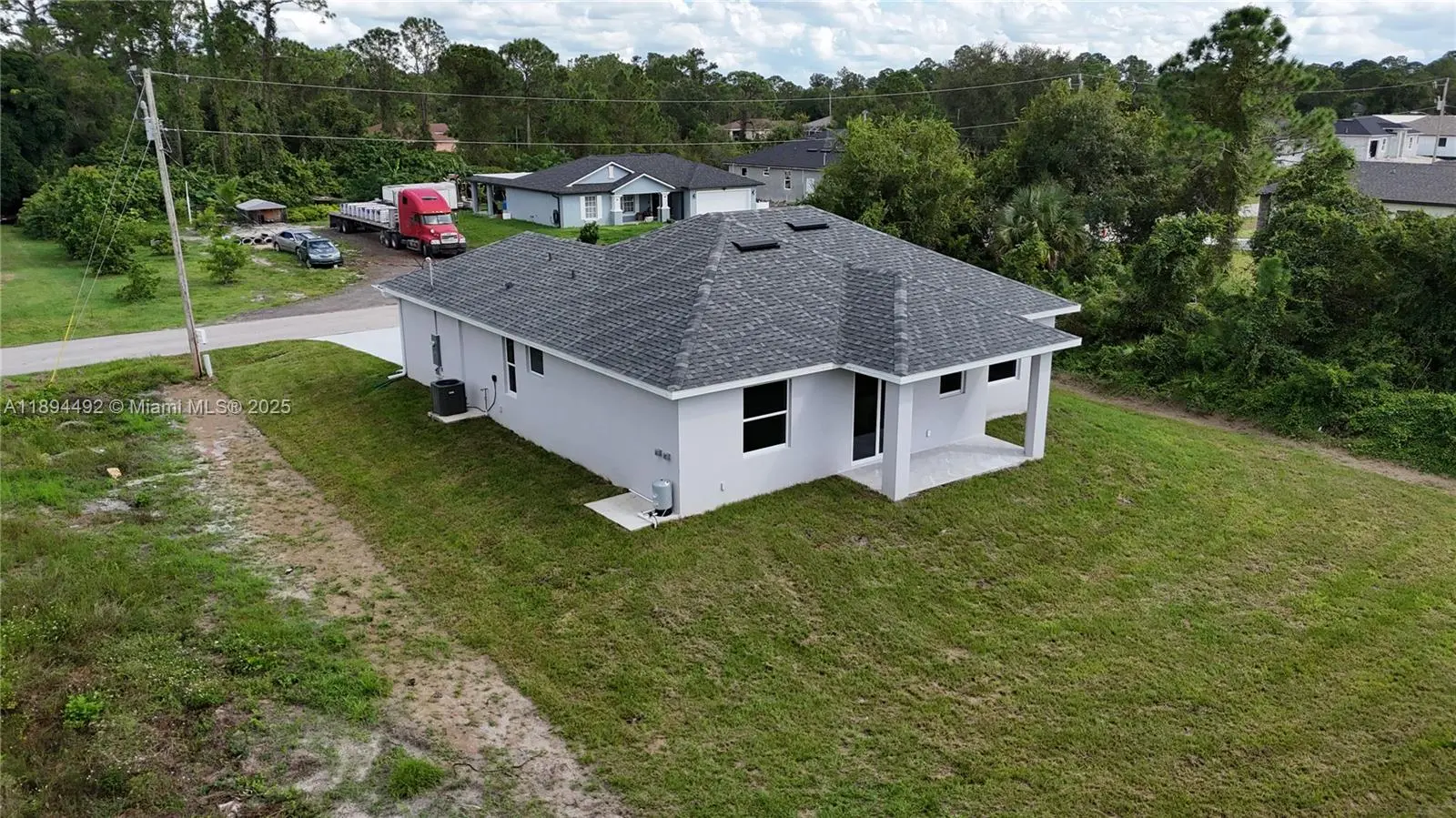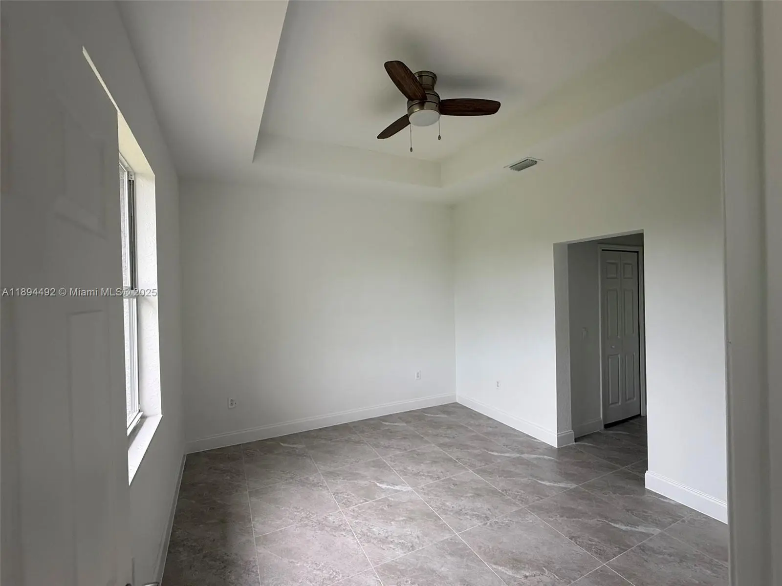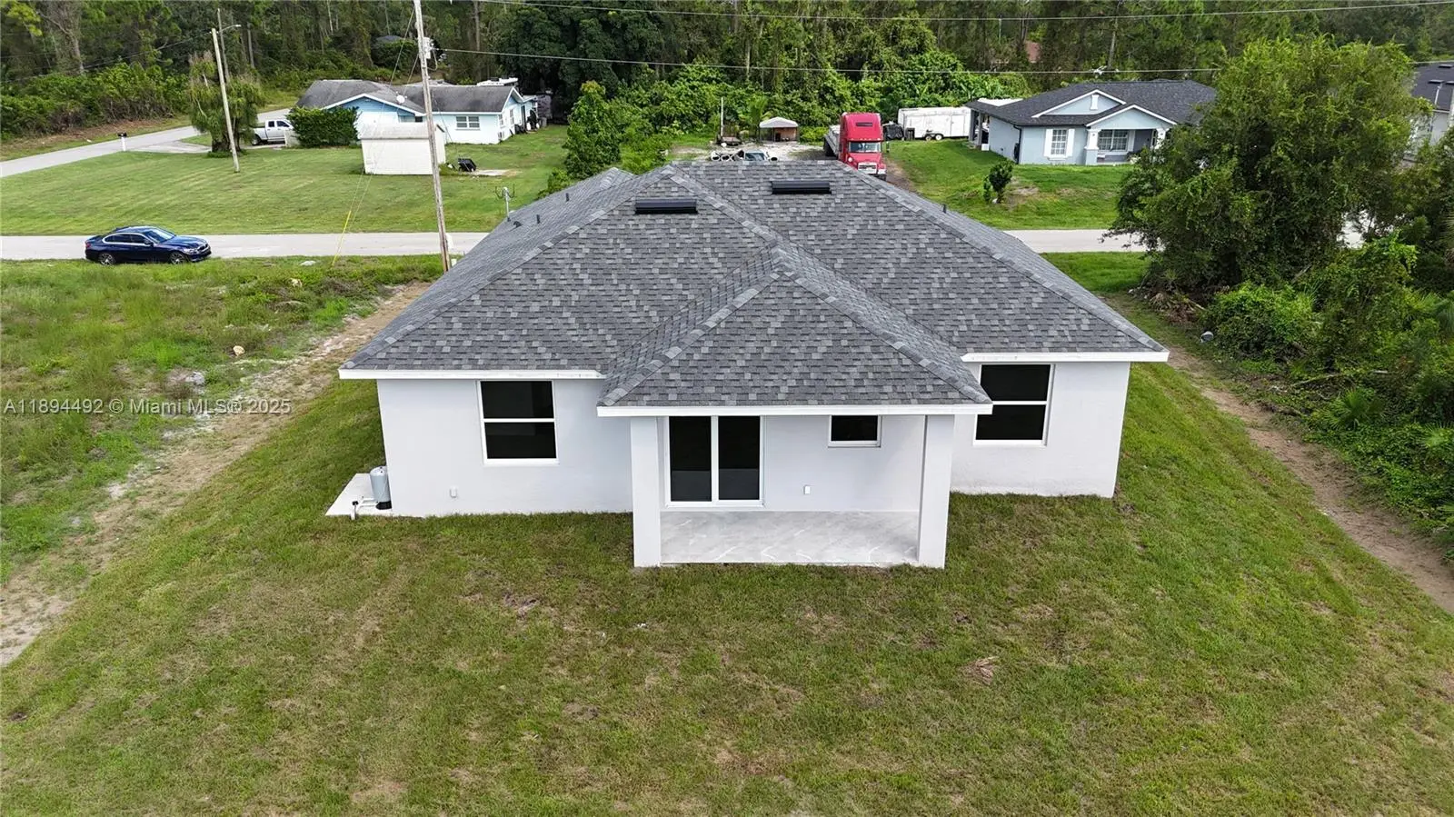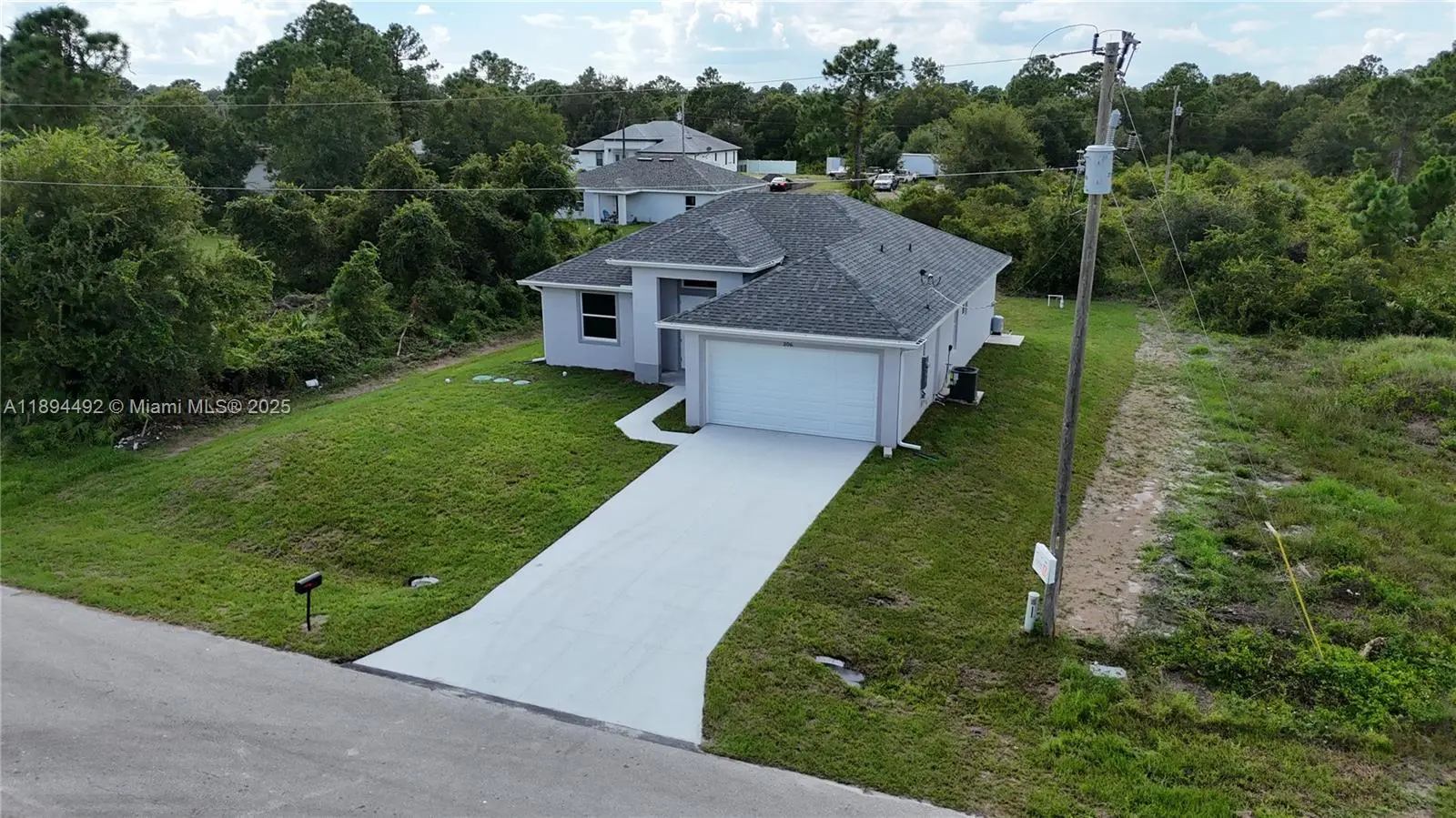 Stunning new construction – move-in ready 3-bedroom, 2-bath home with double garage and screened lanai in prime East Lehigh location. This bright, open-concept home features high ceilings with elegant step details, impact-resistant windows, and porcelain tile throughout. The kitchen offers quartz countertops, stainless steel appliances, and modern designer lighting. Each bedroom includes ceiling fans with lights. The master suite boasts dual walk-in closets and a spa-style bath with double sinks and a large walk-in shower. A spacious laundry room with utility sink adds convenience. Just 15 minutes to RSW Airport and FGCU, with easy access to Fort Myers, I-75, schools, shopping, and dining. Schedule your showing today!