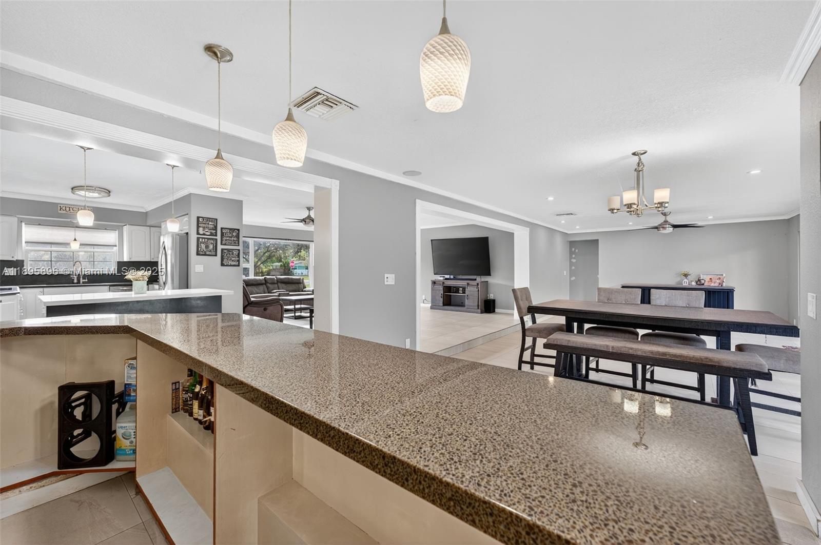 This expansive 4-bedroom, 2-bath Ranch-style estate is gracefully situated on a large corner lot on highly sought-after Holly Lane, offering serene canal views and a private pool oasis. Designed for both comfort and entertaining, the home features a generous open floor plan with a spacious living room and built-in bar, perfect for gatherings. The beautifully updated kitchen and bathrooms blend modern finishes with timeless style, while the oversized bedrooms provide comfort and privacy. This exceptional oversized lot showcases lush, manicured landscaping and a premier Plantation location near everything desired. This is where sophistication meets relaxed South Florida living.