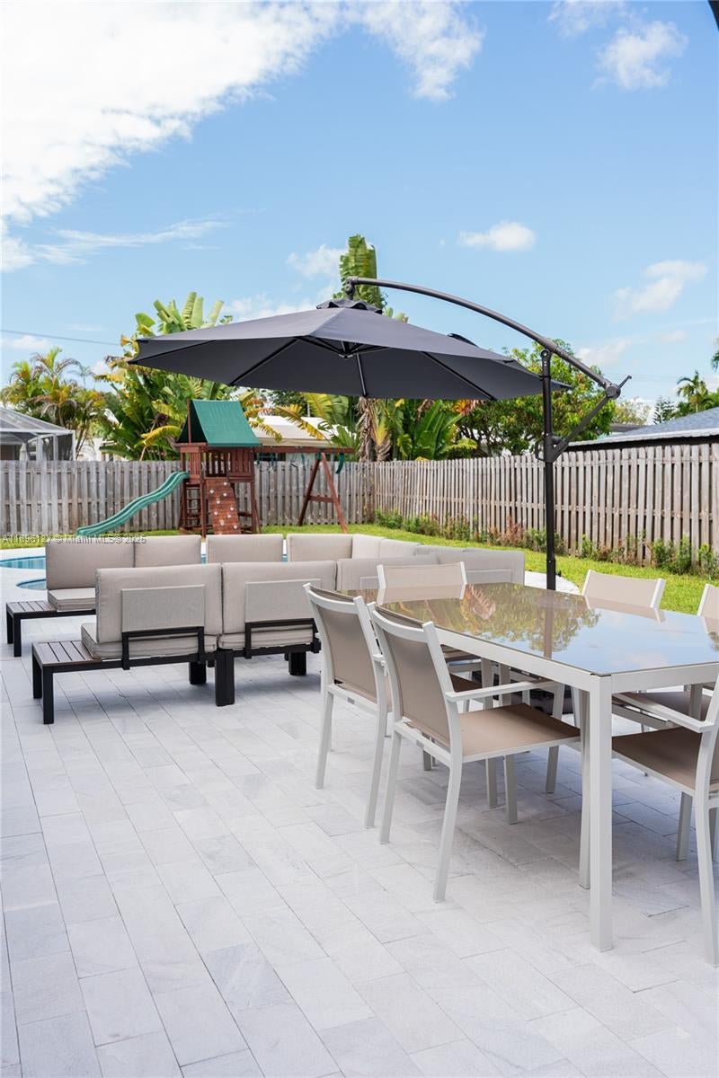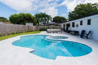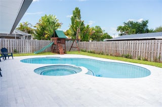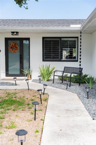 This beautifully updated 4-bed, 2-bath home sits on a 9,090 SF lot and was completely gutted and rebuilt in 2021. Features include new PVC plumbing, electrical panel and wiring, A/C with new ducts, impact windows/doors, tile flooring, and a 2021 roof with 10 year warranty. Kitchen includes 2021 stainless steel appliances, and plantation shutters add style in select areas. The garage features a new door (2022), and in May 2025, the entire pool and deck were redone, complete with a new saltwater filtration system and LED lighting. Located on a quiet street with no HOA. Move-in ready and built to last