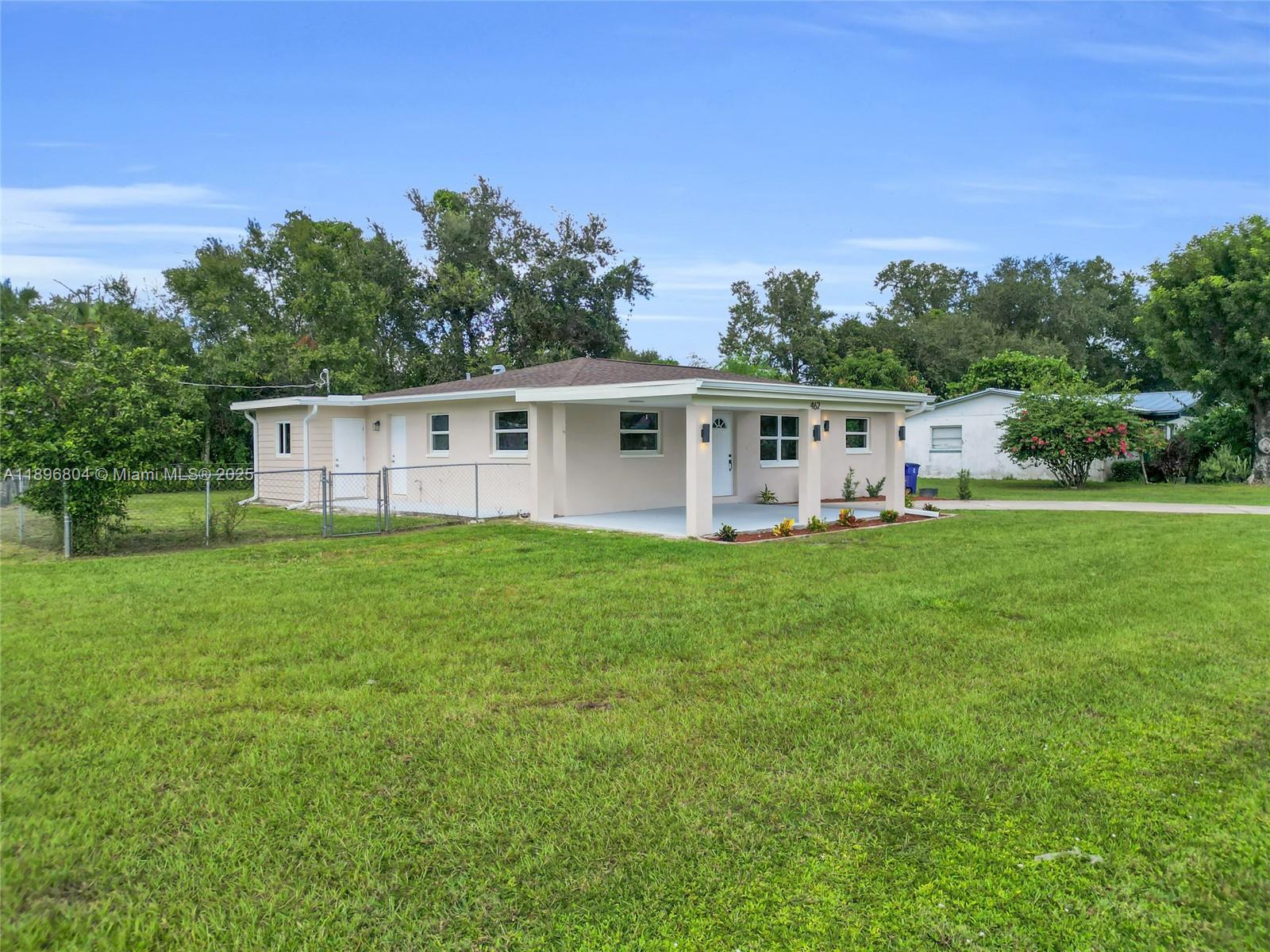 Welcome to a beautifully renovated, move-in-ready home in a quiet, established Fort Myers neighborhood. Enjoy an open, sun-filled layout with fresh paint and luxury wood-plank tile. The brand-new kitchen shines with custom cabinetry, quartz countertops, stainless steel appliances, and a stylish paneled column—perfect for cooking or entertaining. Set on a large corner lot, the exterior features new paint, new lighting, and impact windows. The fenced backyard and patio offer space for outdoor living, weekend BBQs, or a future pool. Inside are 3 generous bedrooms and 2 updated baths with modern finishes. Major upgrades provide peace of mind: new roof, electrical, and plumbing. Separate laundry room with a new water heater. No flood insurance required (not in a flood zone) and NO HOA.