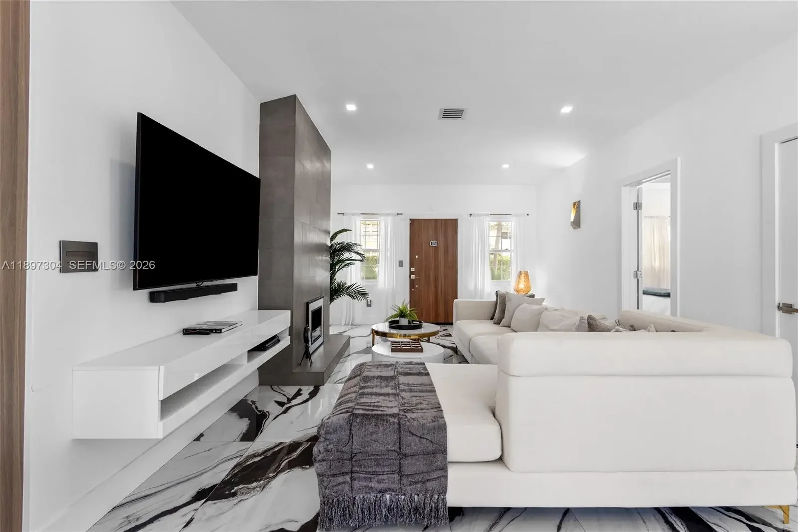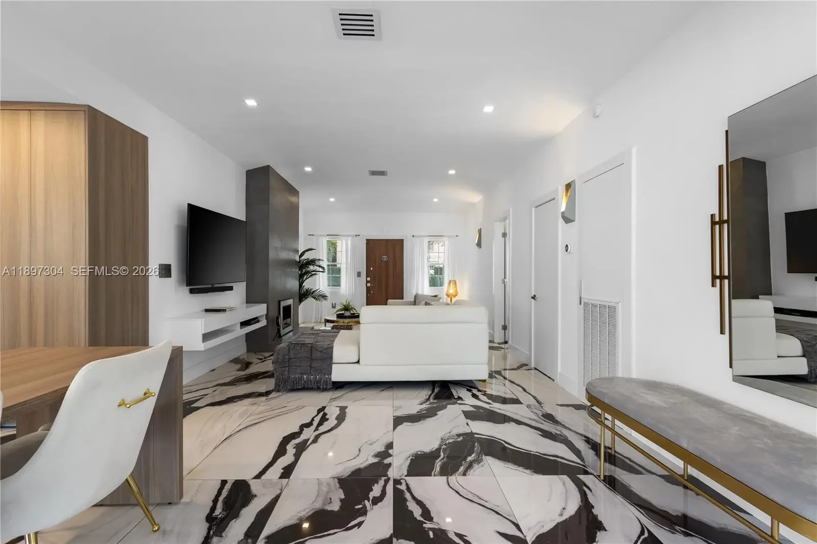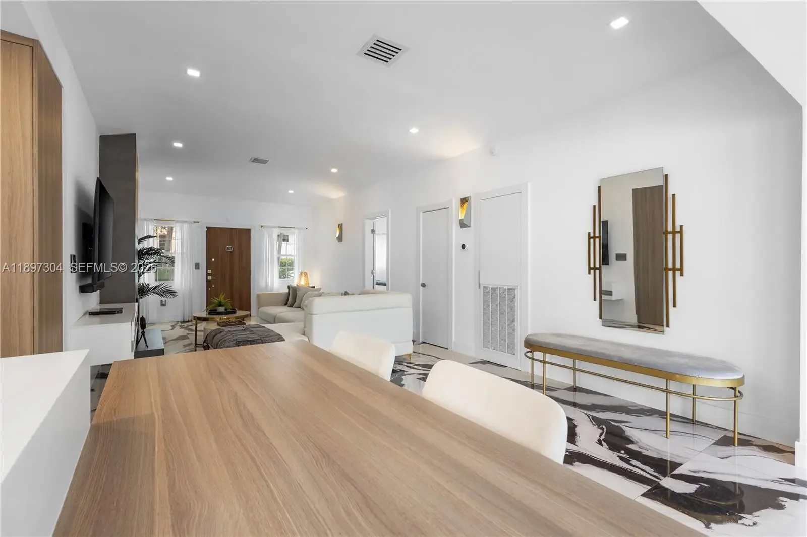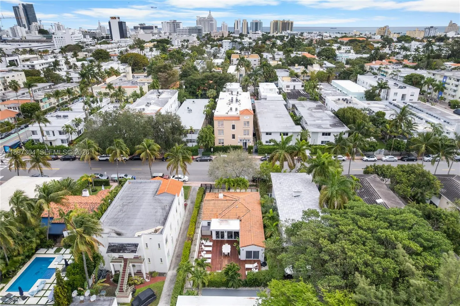 Tucked away just steps from Lincoln Road, this private, fully furnished 3-bedroom, 3.5-bath residence offers a rare blend of space, light, and indoor-outdoor living in the heart of Miami Beach. Designed with an open-concept layout and soaring ceilings, the home is filled with natural light through oversized impact glass doors that seamlessly connect the interior to an expansive, fully furnished deck, ideal for entertaining or quiet evenings under the Miami Beach sky. The kitchen is thoughtfully equipped with stone countertops, high-end stainless steel appliances, and custom cabinetry, creating a clean and functional space for everyday living. Each bedroom offers comfort and privacy, complemented by modern bathrooms and custom built-ins throughout the home. Set on a private lot with dedicated parking, this residence provides a single-family home feel just moments from the beach, dining, and shopping. Perfect for those seeking a turnkey Miami Beach lifestyle with both privacy and convenience.