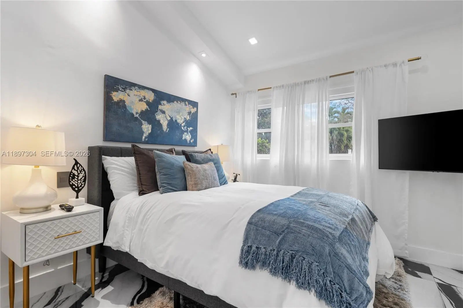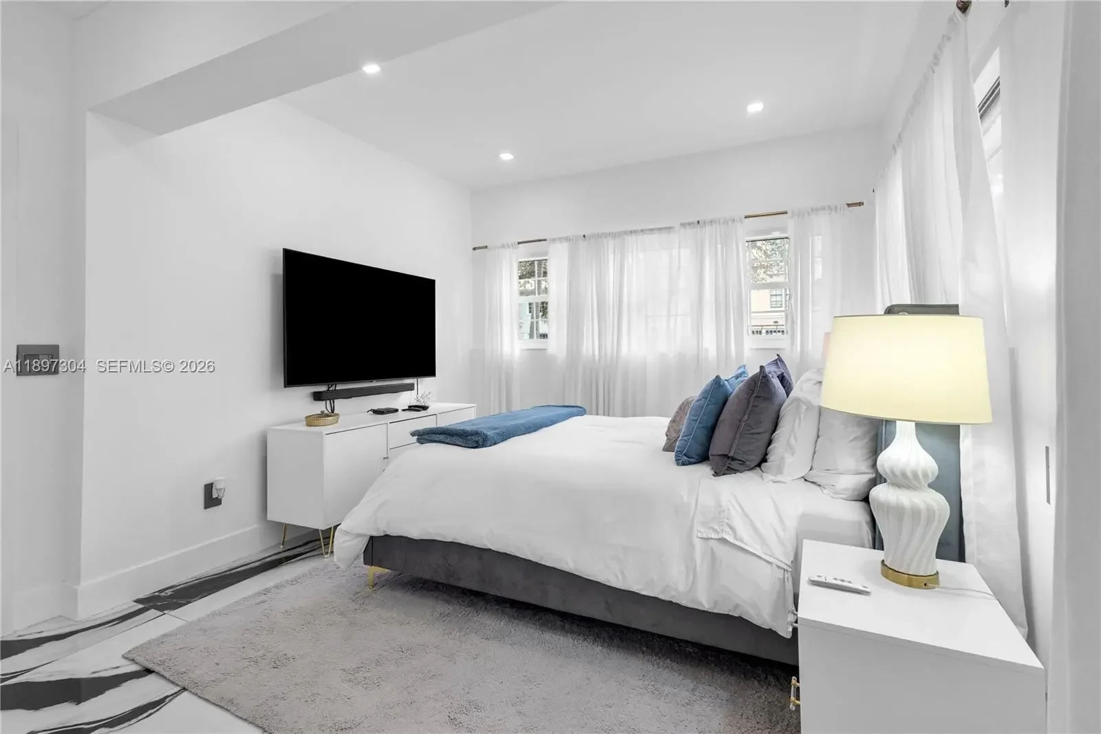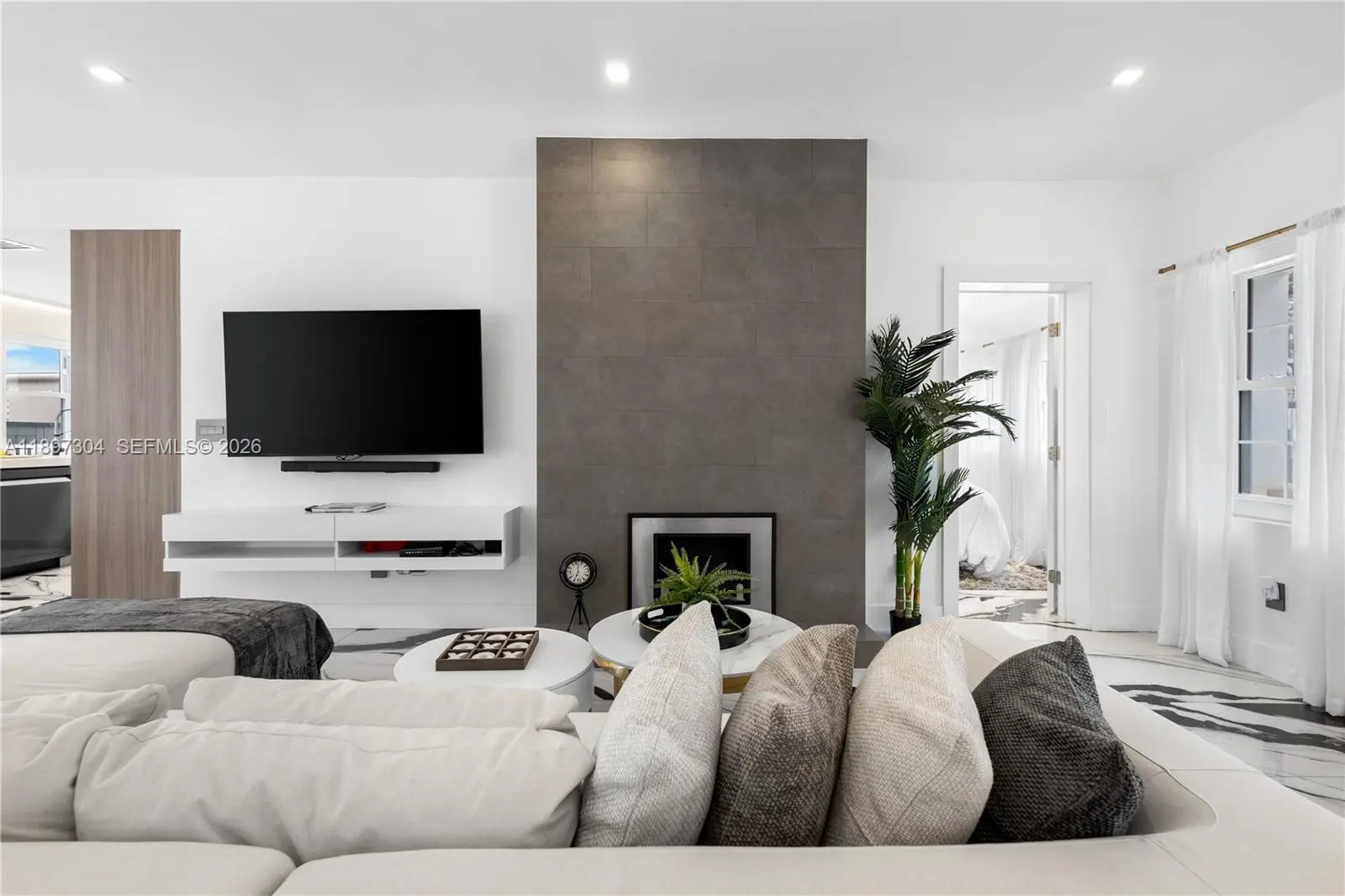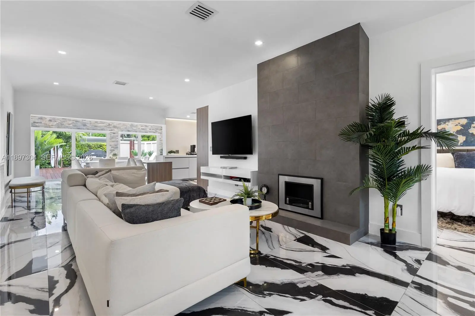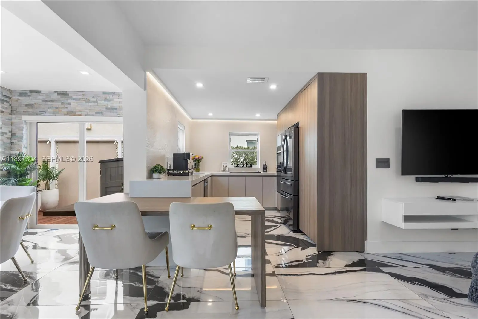 Tucked away just steps from Lincoln Road, this private, fully furnished 3-bedroom, 3.5-bath residence offers a rare blend of space, light, and indoor-outdoor living in the heart of Miami Beach. Designed with an open-concept layout and soaring ceilings, the home is filled with natural light through oversized impact glass doors that seamlessly connect the interior to an expansive, fully furnished deck, ideal for entertaining or quiet evenings under the Miami Beach sky. The kitchen is thoughtfully equipped with stone countertops, high-end stainless steel appliances, and custom cabinetry, creating a clean and functional space for everyday living. Each bedroom offers comfort and privacy, complemented by modern bathrooms and custom built-ins throughout the home. Set on a private lot with dedicated parking, this residence provides a single-family home feel just moments from the beach, dining, and shopping. Perfect for those seeking a turnkey Miami Beach lifestyle with both privacy and convenience.