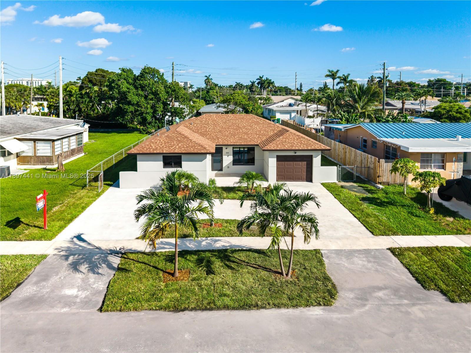Rebuilt from the ground up in 2025, this stunning home offers a spacious open-concept layout with one car garage, and elegant porcelain floors and modern finishes throughout. The kitchen features contemporary cabinetry, quartz countertops, and sleek design details. It includes 3 bedrooms and 2.5 bathrooms, beautifully updated with stylish bathrooms and premium fixtures. The circular driveway and landscaped front yard create a welcoming entrance, while the expansive backyard provides endless possibilities for outdoor living or entertainment. Central A/C, impact windows, and move-in ready condition. Conveniently located in the heart of Dania Beach, east of US-1 — just 5 minutes from the beach, airport, shopping, casinos, and a vibrant mix of dining and cultural attractions.