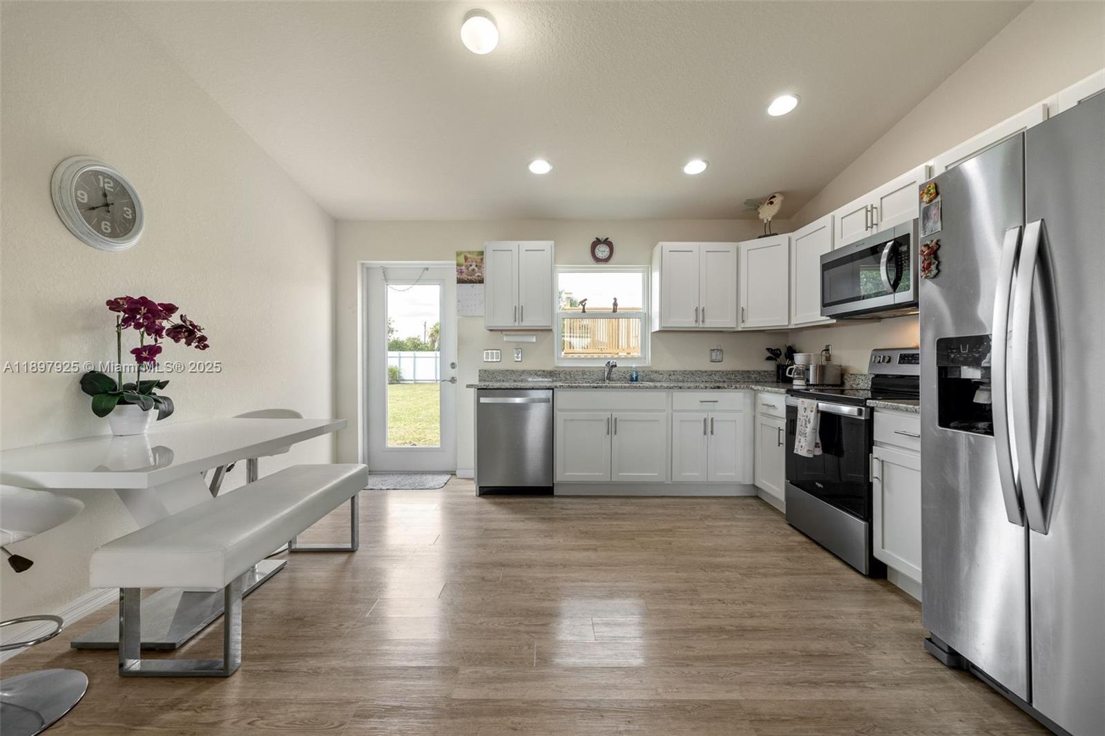 Welcome to this beautifully built 3-bedroom, 2-bath home located in a neighborhood of modern and newly constructed homes. Best of all — SELLER IS OFFERING A $5,000 CREDIT TOWARDS BUYERS CLOSING COSTS and it’s not in a flood zone and no HOA, giving you more freedom and peace of mind. Inside, you’ll find stylish and low-maintenance vinyl flooring throughout the entire home, along with impact-resistant windows and doors that provide both security and energy efficiency. The kitchen features sleek granite countertops and plenty of space for cooking and gathering. Central water ensures reliable service without the hassle of a well system. Step outside and you’ll discover a private, fully fenced backyard enclosed with durable aluminum fencing — ideal for kids, pets, or simply relaxing in peace.