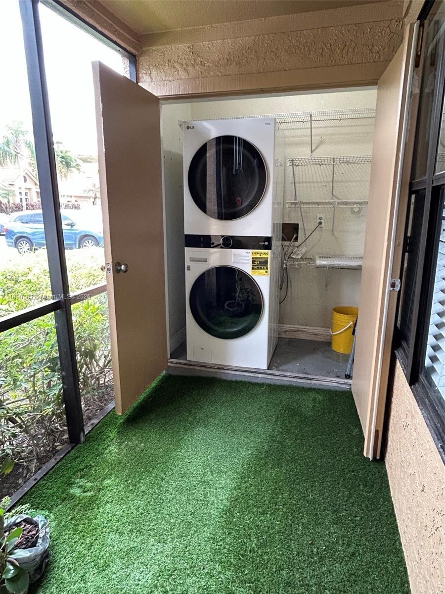 Full of light corner unit located on the first floor, featuring ceramic tile floors throughout, two master suites with private bathrooms and walk-in closets. In-unit new washer & dryer, covered balcony, new stove. This is a family-friendly community offering a pool, gym, kids’ play area, and more to keep you active and entertained. Prime Location: close to banks, churches, shopping centers, restaurants, schools, and more. Two Vehicles maximum. No assigned parking space. Water is included. Repair is done at the second bathroom, it will be finished before tenant move-in.