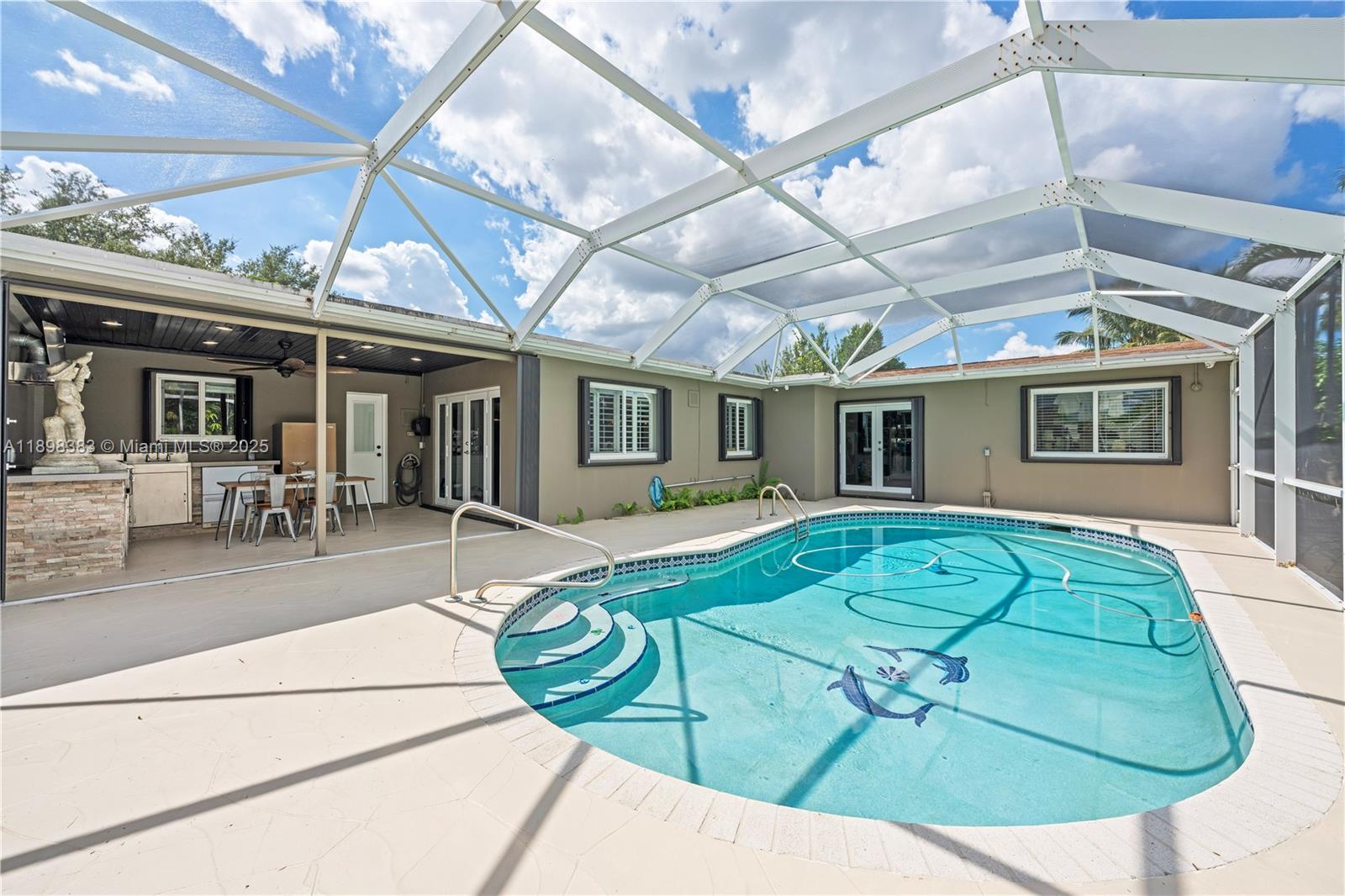 Waterfront living in Pembroke Lakes! This 4BD/2BA, 2,652 sq ft home with NO HOA sits on an oversized lot on the lake with breathtaking lake views. Enjoy a screened pool, outdoor kitchen, real wood-burning fireplace, impact windows, accordion shutters, and a 2021 roof. The modern kitchen features Red Dot KitchenAid appliances, a built-in coffee bar and large double car garage. The expansive rear addition, complete with its own mini-split AC, is large enough for a mother-in-law suite, studio, gym, or entertainment room overlooking the water. Too many great features to list!!! Give me a call to tour this property! Near great schools, CB Smith Park, top malls, and major highways.