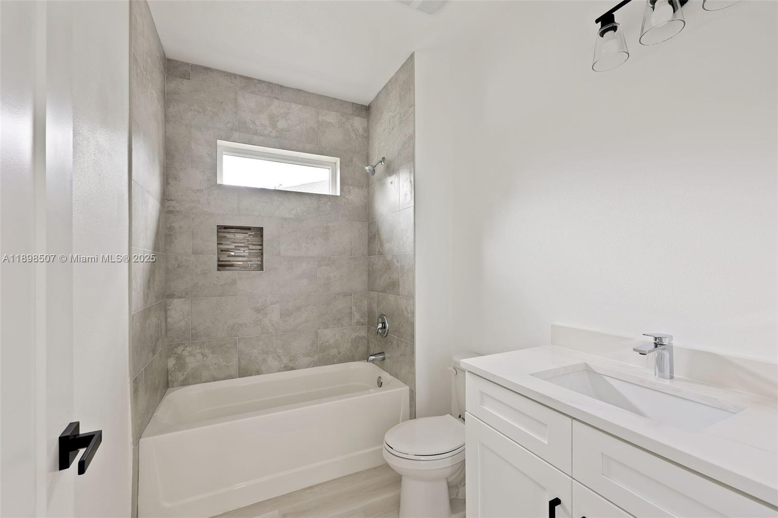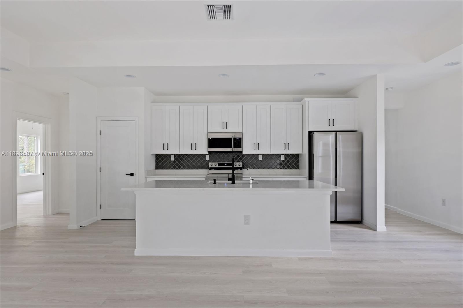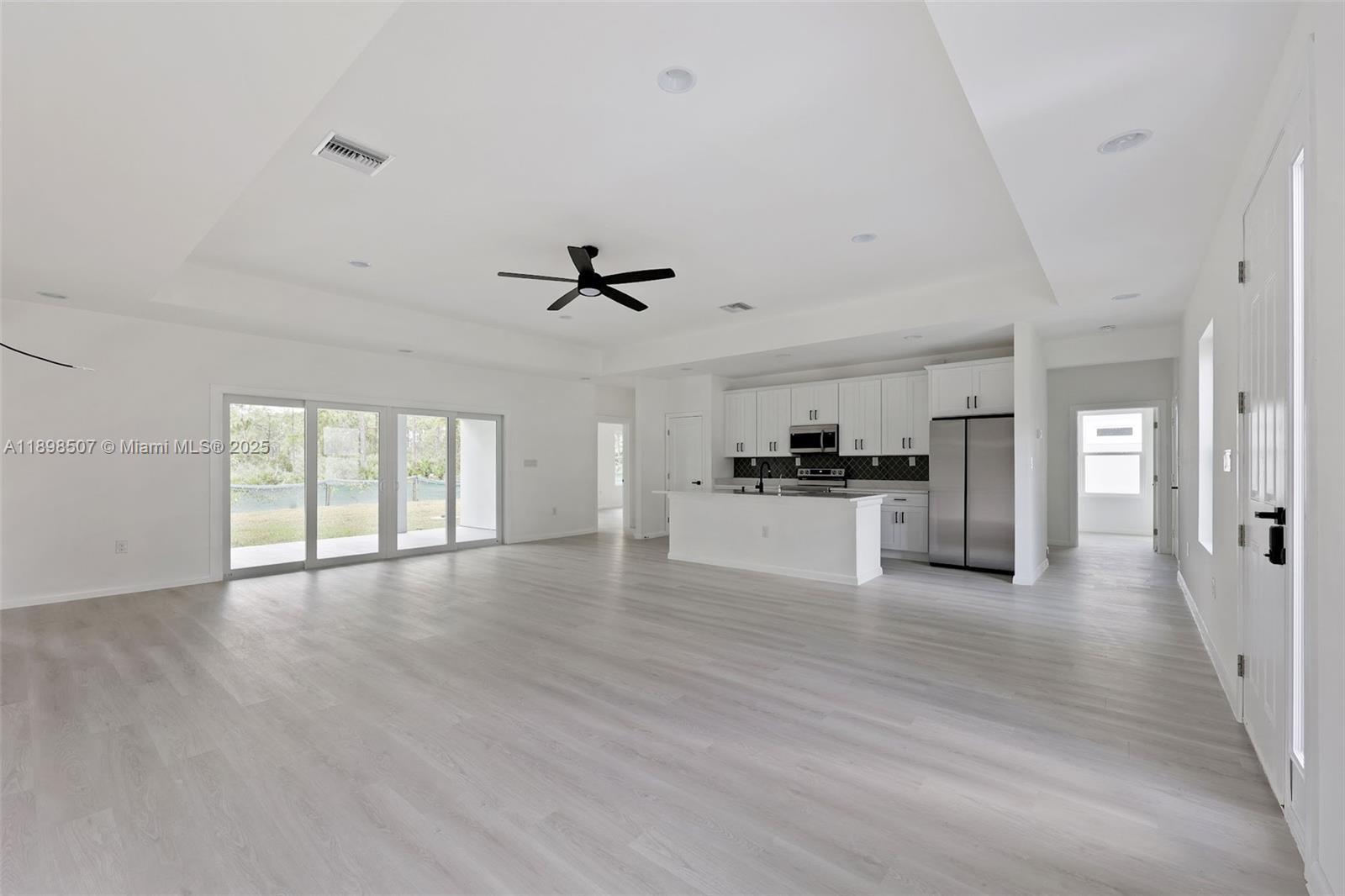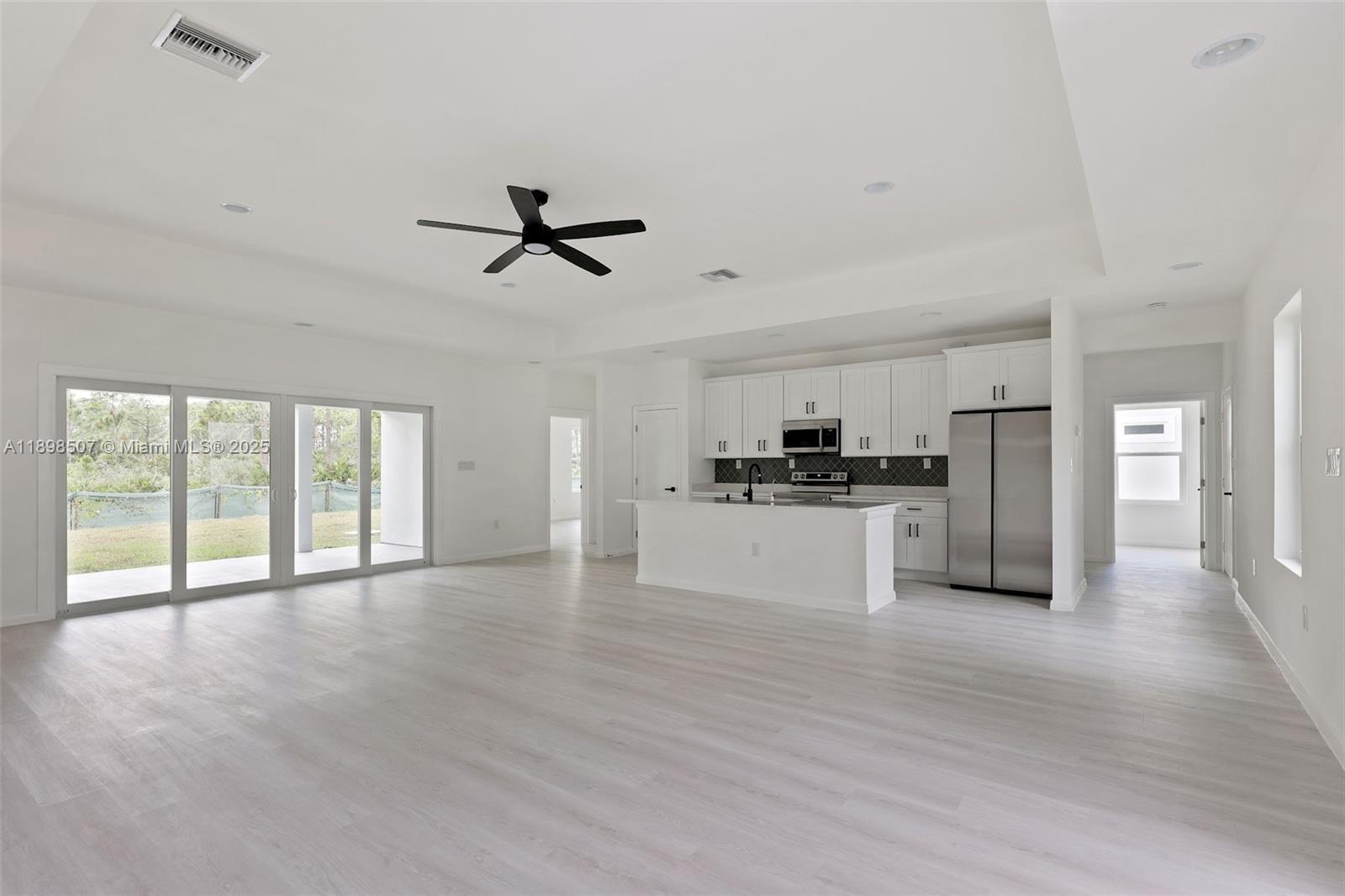 Step into this beautiful and modern home with high ceilings, offering 4 spacious bedrooms and 3 full bathrooms. The open floor plan features a great room perfect for relaxation and gatherings. The beautifully designed kitchen boasts quartz countertops, an island, and stainless steel appliances. The master suite offers a large walk-in closet and a master bathroom with white quartz double sinks and a wall-to-ceiling tiled shower, combining style and luxury. Enjoy peace of mind with impact windows, ensuring safety and tranquility.