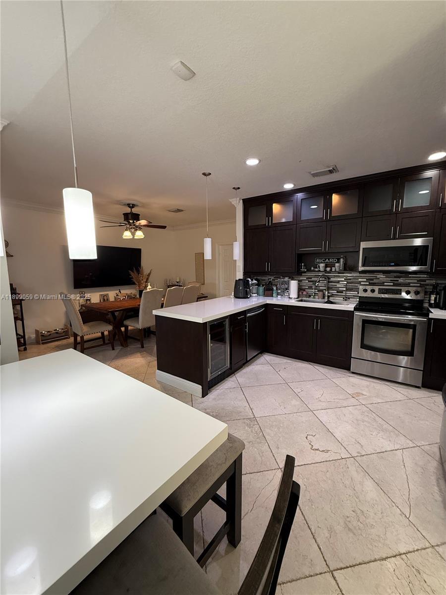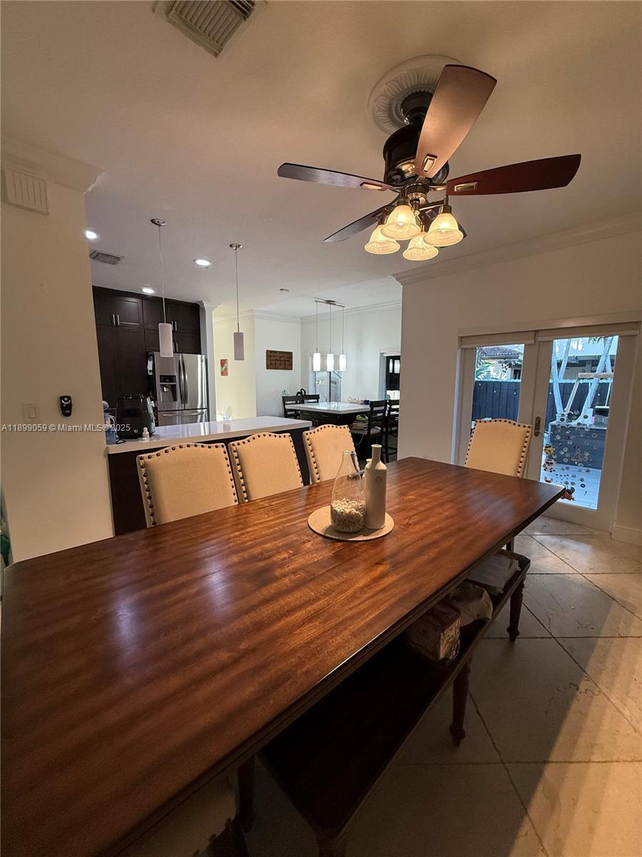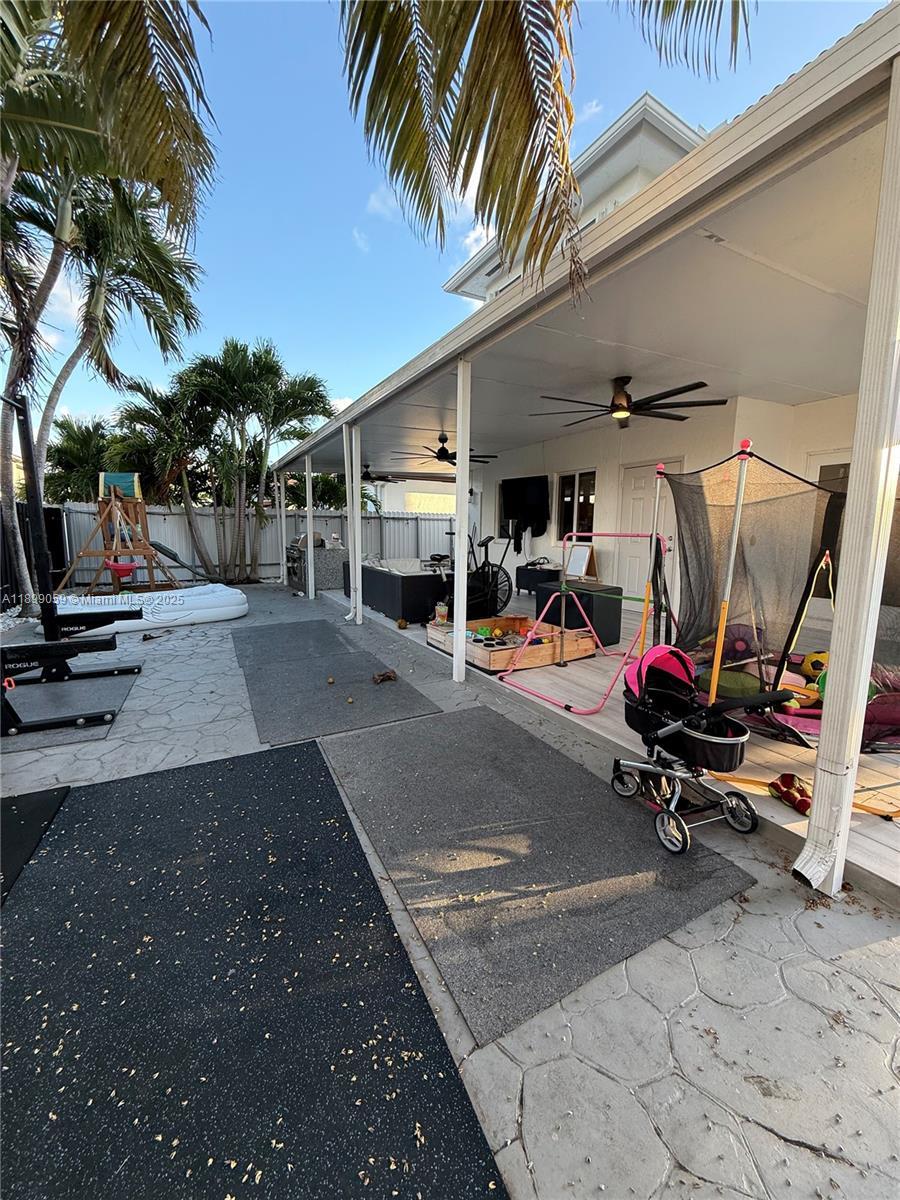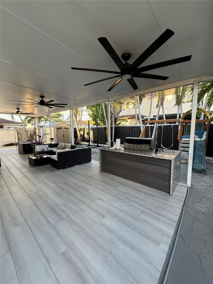 Discover comfort and style in this 3-bedroom, 2.5-bath corner home designed for modern South Florida living.The open layout with soaring ceilings and marble tile floors creates an airy, elegant atmosphere. Each bedroom has custom closets for smart storage.The kitchen offers stainless steel appliances, microwave, dishwasher, and a cozy breakfast nook. Step outside to a backyard perfect for entertaining, with a built-in BBQ and prep island. Highlights include space for an RV, boat, or work vehicle, plus the option to keep select furnishings (dining table, patio set). Garage space not available as part of the rental. Internet & Landscaping included. Conveniently located near top-rated schools, major highways, and Dolphin Mall, this home blends practicality with lifestyle.