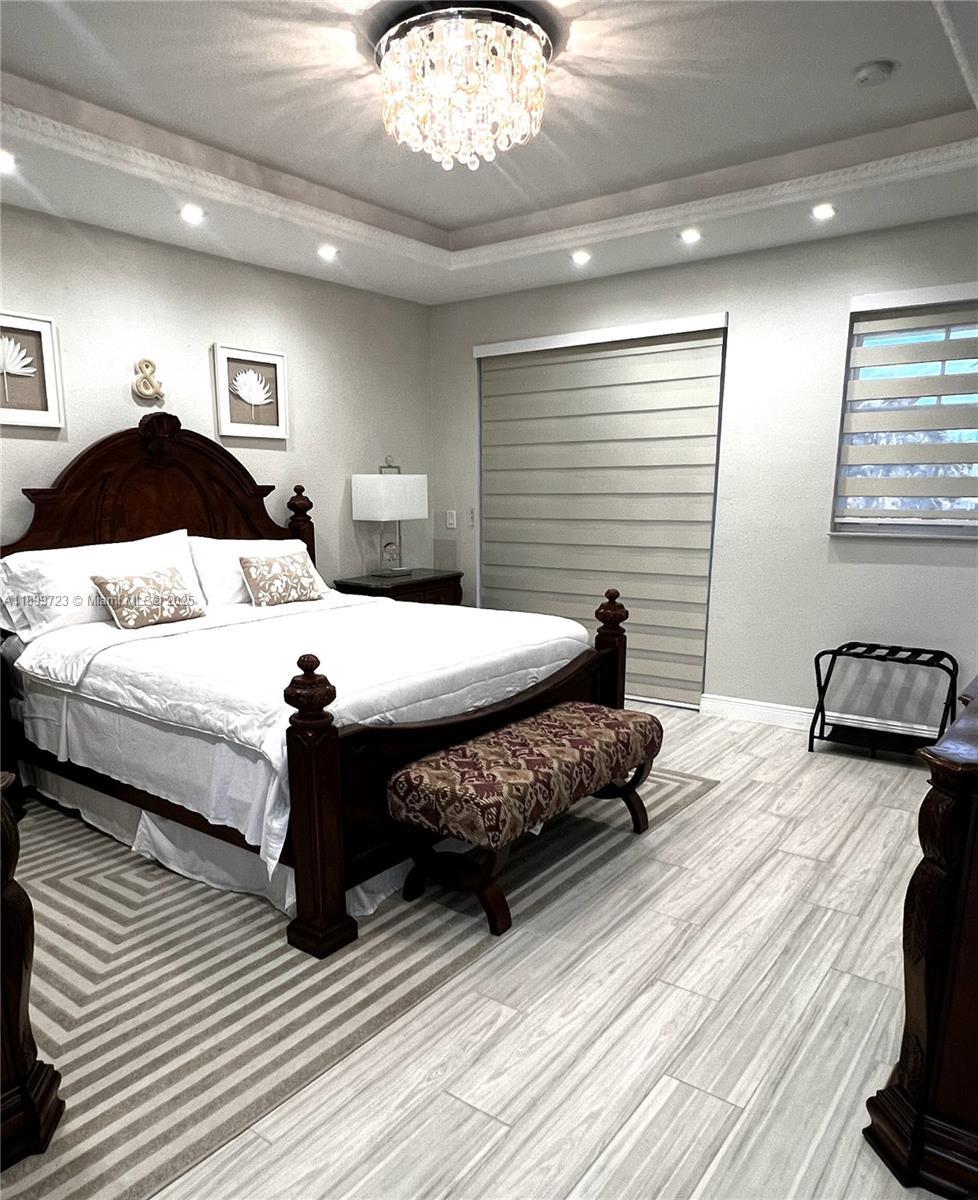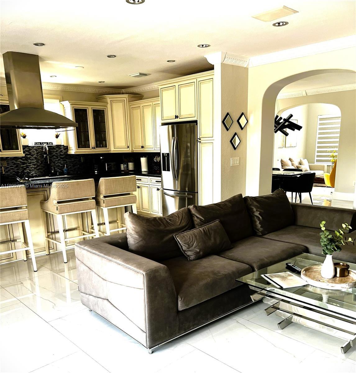 Step into luxury with this beautifully remodeled home that perfectly balances modern elegance and timeless comfort. Every detail has been thoughtfully designed, from the open-concept layout to the high-end finishes throughout.The expansive living area welcomes you with soaring ceilings, recessed lighting, and large picture windows that flood the space with natural light. The gourmet kitchen is a true showpiece, featuring granite countertops, custom cabinetry, a spacious center island, and top-of-the-line stainless steel appliances. Step outside to your backyard oasis—an entertainer’s dream. Enjoy the sparkling pool surrounded by lush landscaping, and plenty of space for lounging in the sun or hosting unforgettable gatherings.
