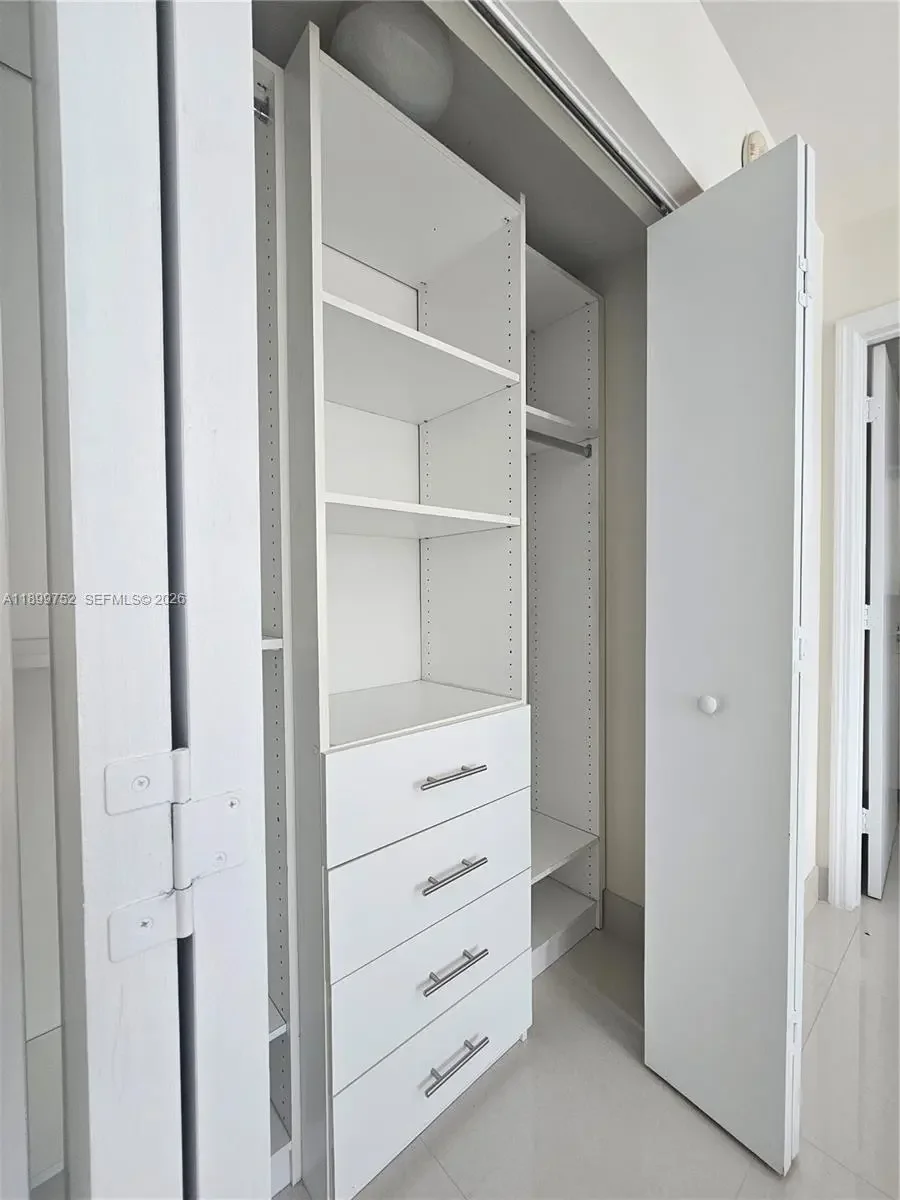 UNIQUE 2BD 2.5 BATH WITH 270 DEGREE VIEW OF BRICKELL. Porcelain flooring, floor to ceiling glass panoramic views from the wrap around balcony w private entrance from each bedroom. Washer & Dryer in unit. Duo roller shades black out/sheer, SS appliances, granite counters, mosaic design, island kitchen, foyer entrance, extra storage room, closet organizers, state of the art wellness center, cardio machines facing the pool, yoga area, each bathroom has a shower, a steam room, dry sauna and a cold plunge tub, 24 HR Valet & Concierge, Convenient store, Gyu-Kaku Japanese BBQ Restaurant outside, contemporary lobby, pool, spa, BBQ Grill Area, conference room, walking distance to Publix, Train station, Mary Brickell Village, Brickell City Centre, Business Financial District, fine dining, trendy places and hot spots. Second Bedroom furnished as picture shows, but could remove, Basic Cable & Internet included by association.