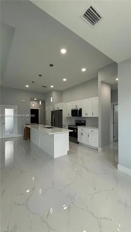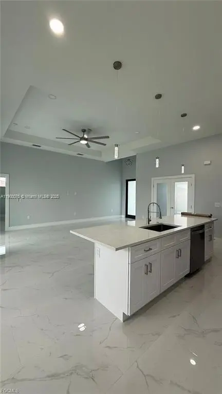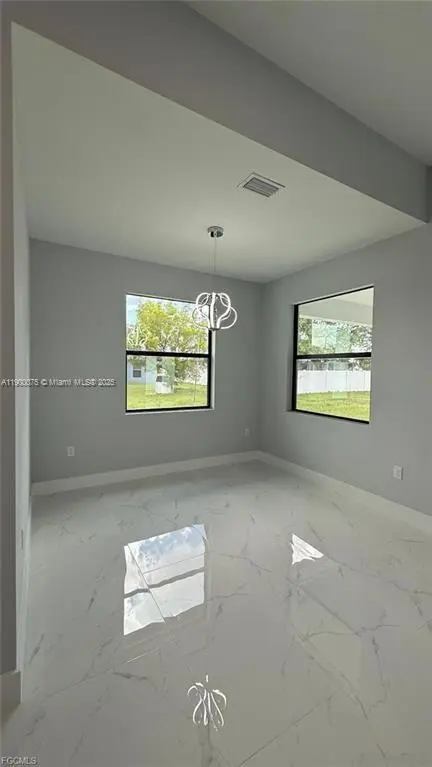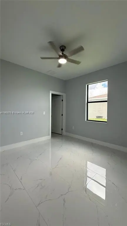 Be the first to live in this stunning 3-bedroom + den, 2-bathroom home located in the desirable NW Cape Coral area. With open-concept layout, high ceilings, modern porcelain tile flooring, and impact-resistant windows and doors. The gourmet kitchen features solid wood cabinetry, a large island, pantry, stainless steel appliances, and stylish fixtures throughout. The master suite includes a spacious walk-in closet and a luxurious in-suite bathroom with a fully tiled walk-in shower. Window treatments and ceiling fans installed. Energy-efficient LED lighting, a smart thermostat, and no HOA restrictions. The property also includes a spacious two-car garage and a large backyard, perfect for outdoor enjoyment. Located near schools, shopping, and main roads for easy commuting.
