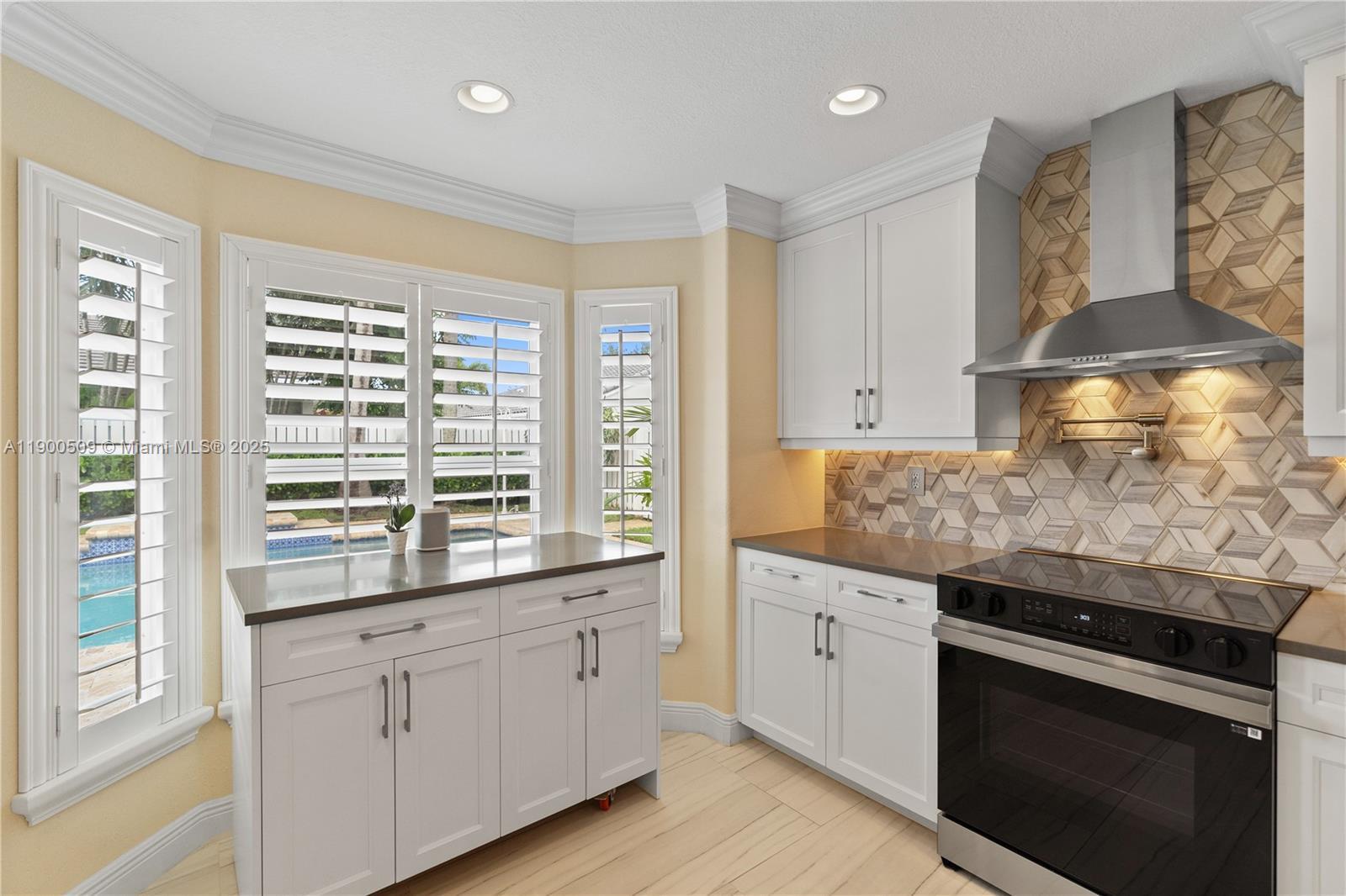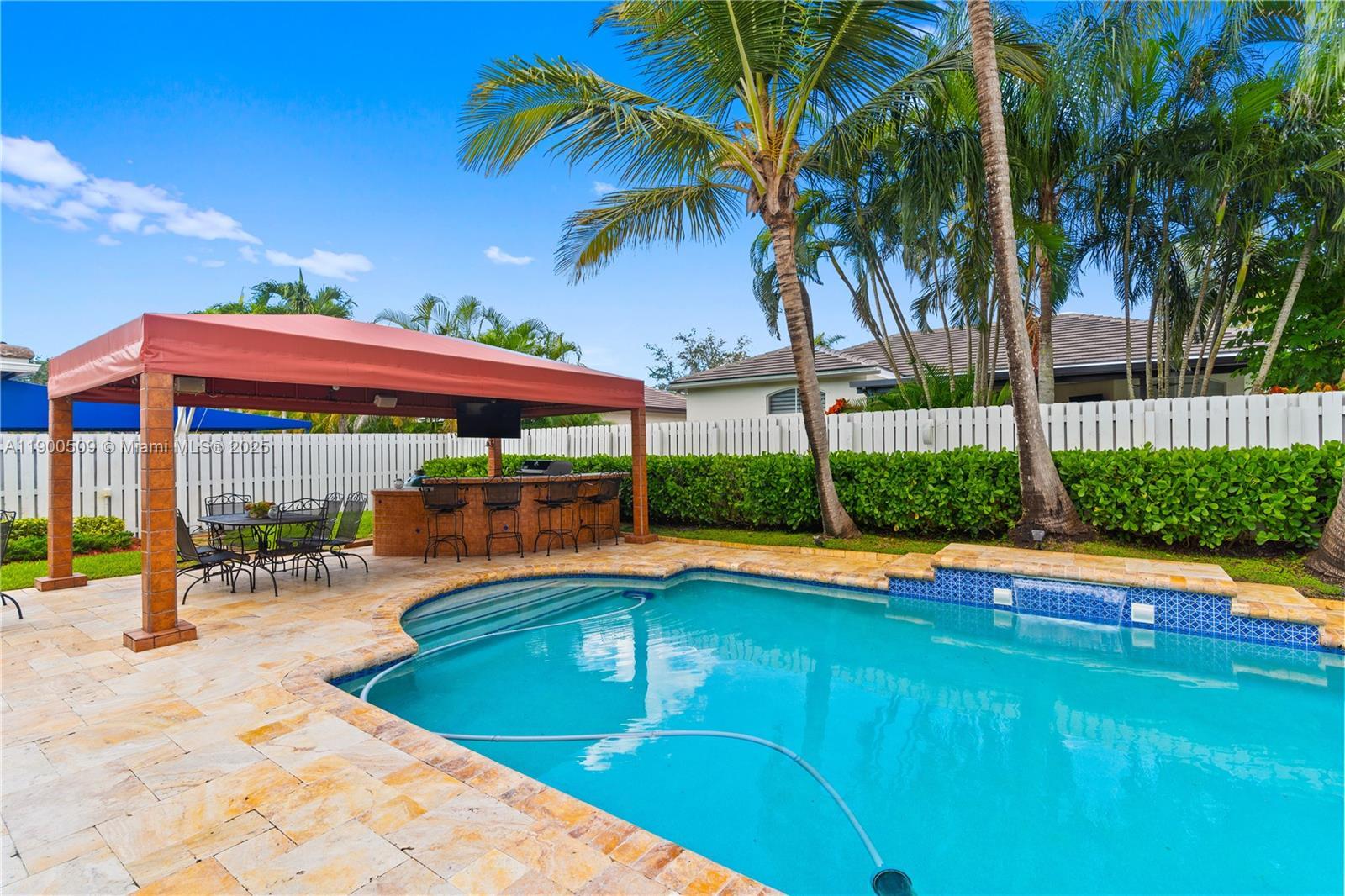 Beautifully updated 3 bedroom/2.5 bath two-story home in sought after Keystone Lake! Nicely designed kitchen features stainless appliances, modern finishes, & plenty of space for cooking. This home has been well maintained with major updates including a new roof (2023), new AC (2024), & impact windows for comfort & peace of mind. Details such as crown molding, plantation shutters, & fresh finishes throughout create a clean & inviting atmosphere. Enjoy outdoor living at its best in the private fenced backyard, complete with a sparkling pool & covered bar area with built-in grill perfect for entertaining or relaxing year-round. Keystone Lake is a warm, family-friendly neighborhood known for its scenic lake views and convenient location — truly one of the most desirable places to call home.