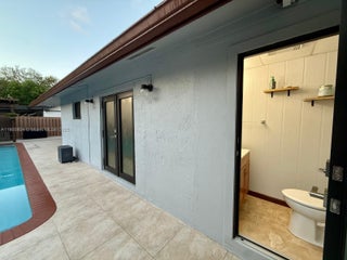 Welcome to this beautifully maintained home offering comfort, style and relaxation. Step outside to your private backyard oasis with an amazing pool, perfect for entertaining after a long day. The home also includes covered barbecue hut with grill, seating area, and half-bath. Spacious patio ideal for gatherings. Ample living room, open floor plan/high ceilings that create a bright and airy atmosphere. Featuring 2 bedrooms and 2 stylishly updated bathrooms. The kitchen includes brand-new stainless-steel appliances. Washer and Dryer included. Conveniently located near shopping, dining and major highways, this home offers the perfect blend of convenience and tranquility.