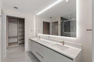Elevated luxury in this waterfront 1BR+Den, 2BA residence at Aria Reserve. Premium upgrades include custom soffit lighting throughout, motorized shades in the primary bedroom, premium roller shades in the living area, and fully customized built-out closets in both the primary bedroom and den. Floor-to-ceiling windows, open layout, modern kitchen with Thermador appliances and quartz countertops. Flexible den ideal for office or guest room. Private balcony with sweeping views of Biscayne Bay. Aria Reserve offers 2+ acres of world-class amenities: bayfront and rooftop pools, spa, fitness center, co-working space, theater, tennis/basketball courts, café, and 24/7 concierge. Prime Edgewater location near Design District, Wynwood, Midtown, Brickell, and Miami Beach.