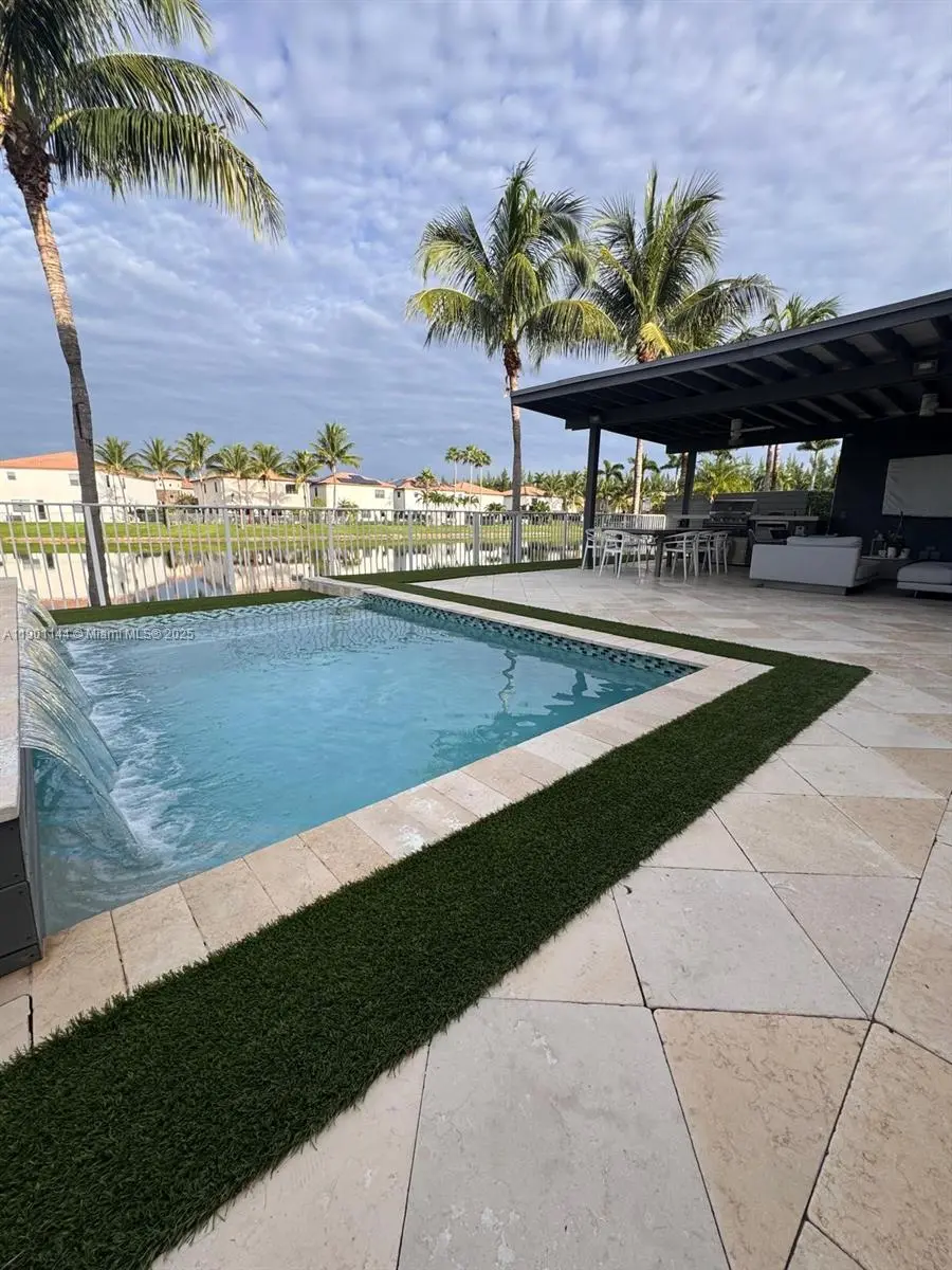 Single-Family Home in Doral Located in a gated community with the largest, most fully equipped, resort-style Clubhouse in Doral—offering the lowest monthly HOA fees in the area. This beautifully remodeled two-story home (fully updated just 2 years ago) features stunning lake views, 5 spacious bedrooms, 4 full bathrooms, and a guest half-bath. The expansive master suite includes three large closets. The modern kitchen boasts ceiling-height cabinetry, a smart-screen refrigerator, wine cooler, and double oven. Outdoor living is elevated with a custom pergola, porcelain countertop, built-in BBQ area, and integrated refrigerator. Enjoy a heated pool, low-maintenance artificial grass, and a seamless indoor-outdoor lifestyle.