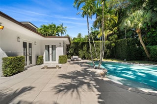 Nestled on a lush 12,000SF Lot along prestigious North Bay Road, this elegant 5-Bed, 3.5-Bath single-story residence combines modern sophistication with timeless charm. Bright & open interior features floor-to-ceiling windows, glossy porcelain floors, and living areas ideal for entertaining. A sleek modern kitchen showcases high-end appliances and custom cabinetry, while the formal dining room doubles as an art showcase. Enjoy a built-in bar, media room, and seamless flow to the private outdoor oasis with a heated pool and tropical landscaping. Additional highlights include a double garage, water filtration system, Generac generator and security system. This home offers the ideal balance of comfort, design, and functionality. Moments from the best of the ocean and La Gorce Country Club.