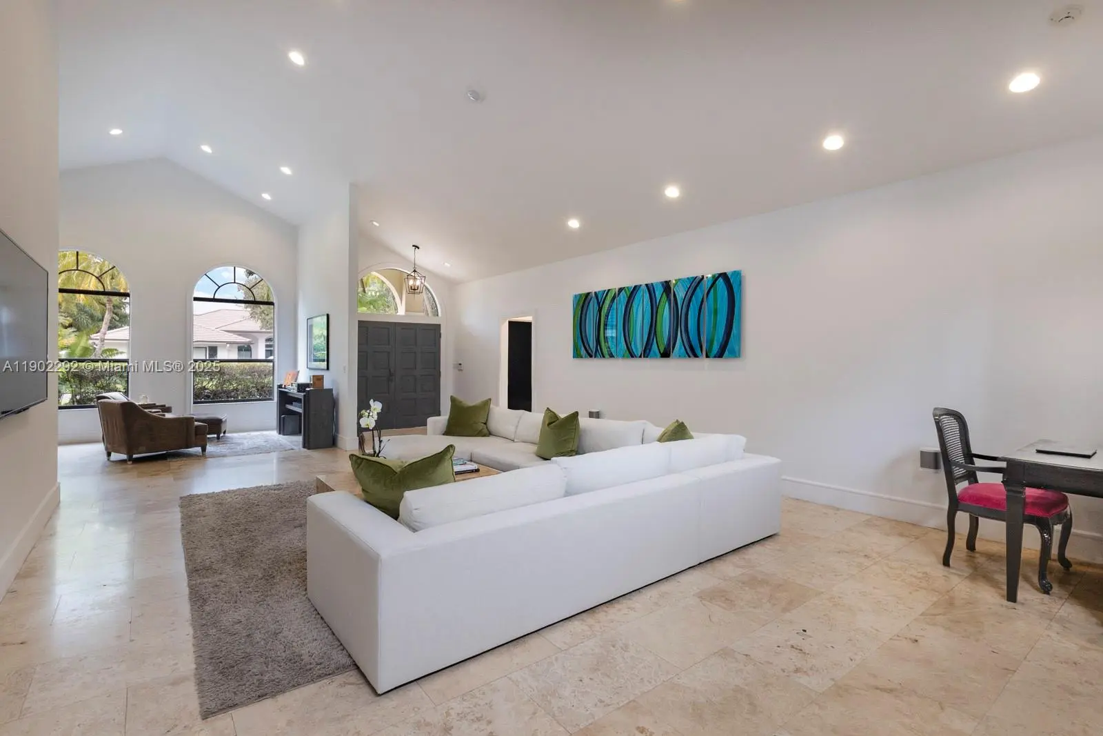 Beautiful single family home on the biggest lot (20,055 sqft) in North Pinecrest's gated community of Arabesque. 1990 Hollub-built 4/2.5 split plan with soaring high ceilings and open living spaces. Huge primary suite includes a separate office or sitting room with tons of closet space and a large bathroom. Marble floors, indoor laundry and impact glass windows on front side. Original patio terrace enclosed for extra living space, lushly and gorgeously landscaped yard, built-in BBQ grill, and plenty of room to build a pool. Ideally located in the best part of Pinecrest with access to the best Pinecrest schools (Palmetto elementary, Palmetto middle, and Palmetto Senior High) and all points north.