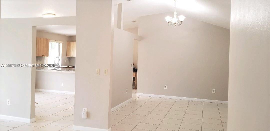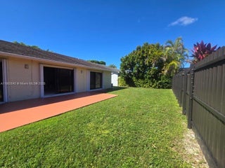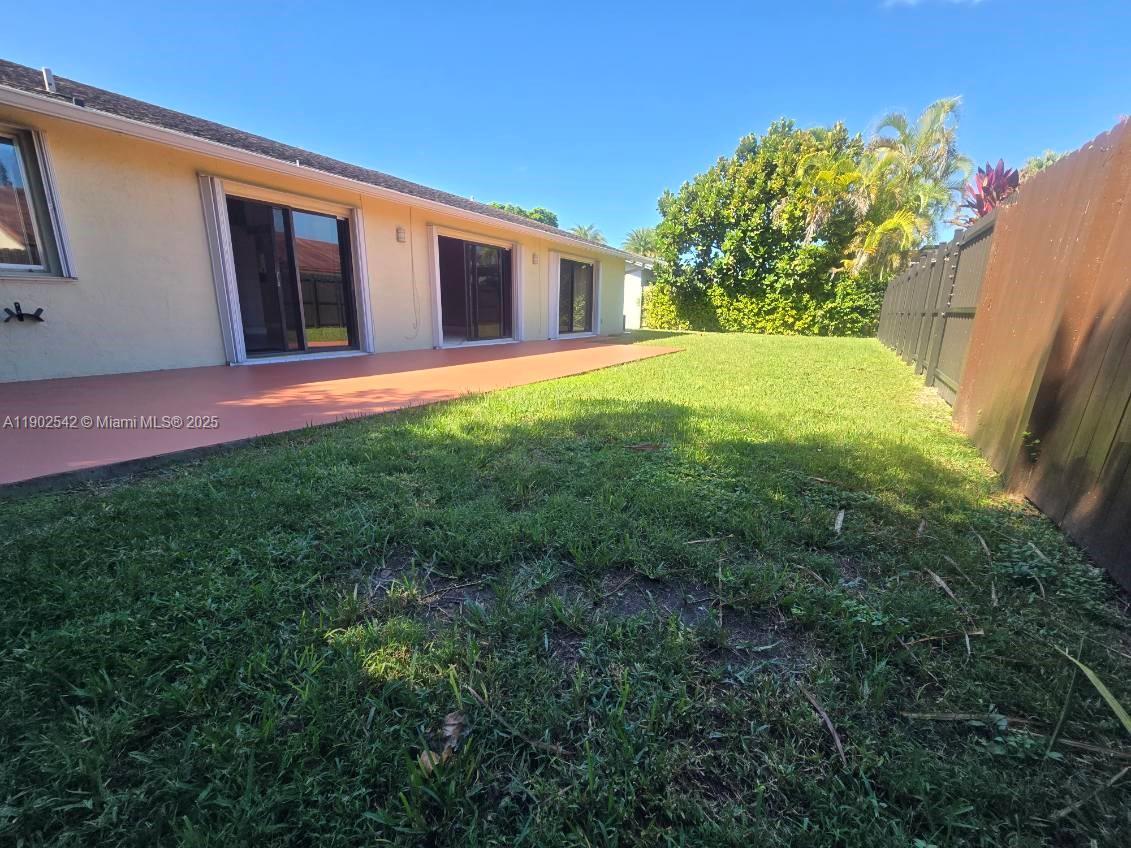Spacious CORNER, single family home in family-oriented neighborhood of Sugarwood, Kendall, just 4 miles west of MDC Kendall campus. Home has a comfortable layout with high vaulted ceilings, a spacious living/dining room, stainless steel appliances & granite countertops. Full size washer & dryer. All living areas are tiled & all bedrooms have newer, modern laminate floors. Both bathrooms were renovated just a few years ago & feature newer wood vanities. The expansive backyard has a concrete pad for outdoor bbqs, dining with family & friends. Sugarwood Park & Claude Pepper Elementary School are right behind the community & you can easily take a 5 minute walk to either. Parking for 2 vehicles inside garage, plus driveway. Monthly lawn maintenance included in rent.
