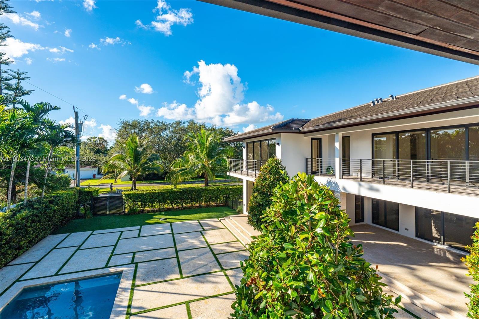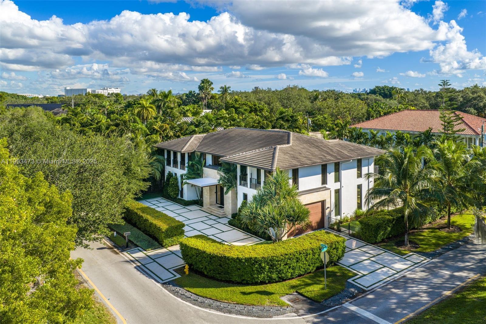 Modern elegance meets timeless sophistication in the heart of High Pines! Built in 2020 on a rare 12,500 SF corner lot, this stunning 7,564 total SF estate offers 5 bedrooms, 6 baths, and an impeccable blend of style and function. Thoughtfully designed with refined architectural details, the home features a private elevator, wine cellar, executive office, generator, striking Koi pond & outdoor oasis with pool, summer kitchen & covered patio. Expansive living spaces with floor-to-ceiling glass doors and soaring ceilings create seamless indoor-outdoor flow, while multiple balconies offer serene views. Every inch showcases exquisite craftsmanship and custom finishes. Perfectly situated on one of High Pines’ most coveted streets—just moments from South Miami, Coral Gables, and Coconut Grove