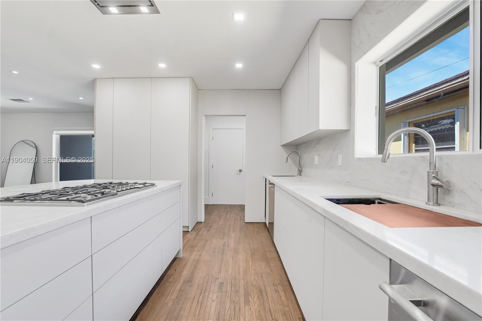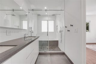 This completely renovated gem offers 5 spacious BR's & 5 Baths across 3,100 SF of luxurious living space. Step inside to find hi-ceilings & wood flrs leading to a chef's kitchen fully equipped w/ Thermador appliances, a gas stove, double ovens, 2 DW's, 2 Sinks and a breakfast bar. The open concept provides an eat-in kitchen and a butler's pantry for ultimate convenience. Relax in the expansive private yard featuring a below-ground pool, perfect for entertaining w/ a built-in barbecue, outdoor kitchen & gas grill. The hurricane impact windows & smart thermostat enhance your comfort. With both eastern and western exposures, enjoy breathtaking sunrises and sunsets. The home boasts energy-efficient features like central AC & heating, ensuring comfort year-round. Don’t miss out!