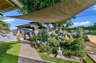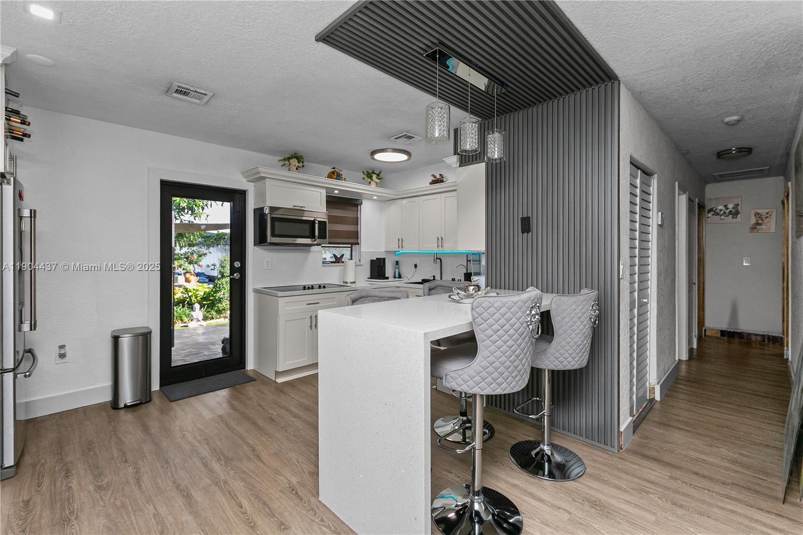Welcome to this inviting 3-bed, 1-bath single-family home in Myrtle Grove 1st Addition (Miami Gardens 33056). Enjoy a newer roof, laminate floors, and abundant natural light with an open living-to-kitchen layout. The renovated kitchen features quartz countertops, ample cabinets, stainless steel appliances, and a cozy coffee-bar nook. The updated bathroom adds fresh appeal. Outside, an enchanting backyard with a man-made pond with real fish is perfect for relaxing, entertaining, grilling on warm South Florida days, and offers space for a pool. The paved driveway provides ample parking. Close to shopping, places of worship, St. Thomas University, and major highways. No HOA! 30-day post-occupancy may be required. A rare opportunity to live comfortably and freely in a vibrant community.
