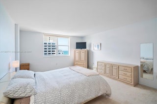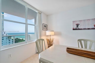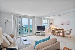 Sunlit and immaculate 1,225 sq ft oceanfront 1BR + den / 2BA residence at Carriage Club South, easily converted to a two-bedroom, with ocean views from every room. This spacious condo features a large balcony with stunning ocean and bay views, an eat-in kitchen, and hurricane-impact doors and windows throughout. The primary suite offers room for a sitting area and exceptional storage with three closets, including a walk-in, plus an additional walk-in closet off the main living area. Full-service building with 24-hour concierge, fitness center, heated pool, and direct beach access with chairs and umbrellas. Ideally located along Miami Beach’s Collins Avenue corridor, minutes to Bal Harbour, Surfside, and South Beach.