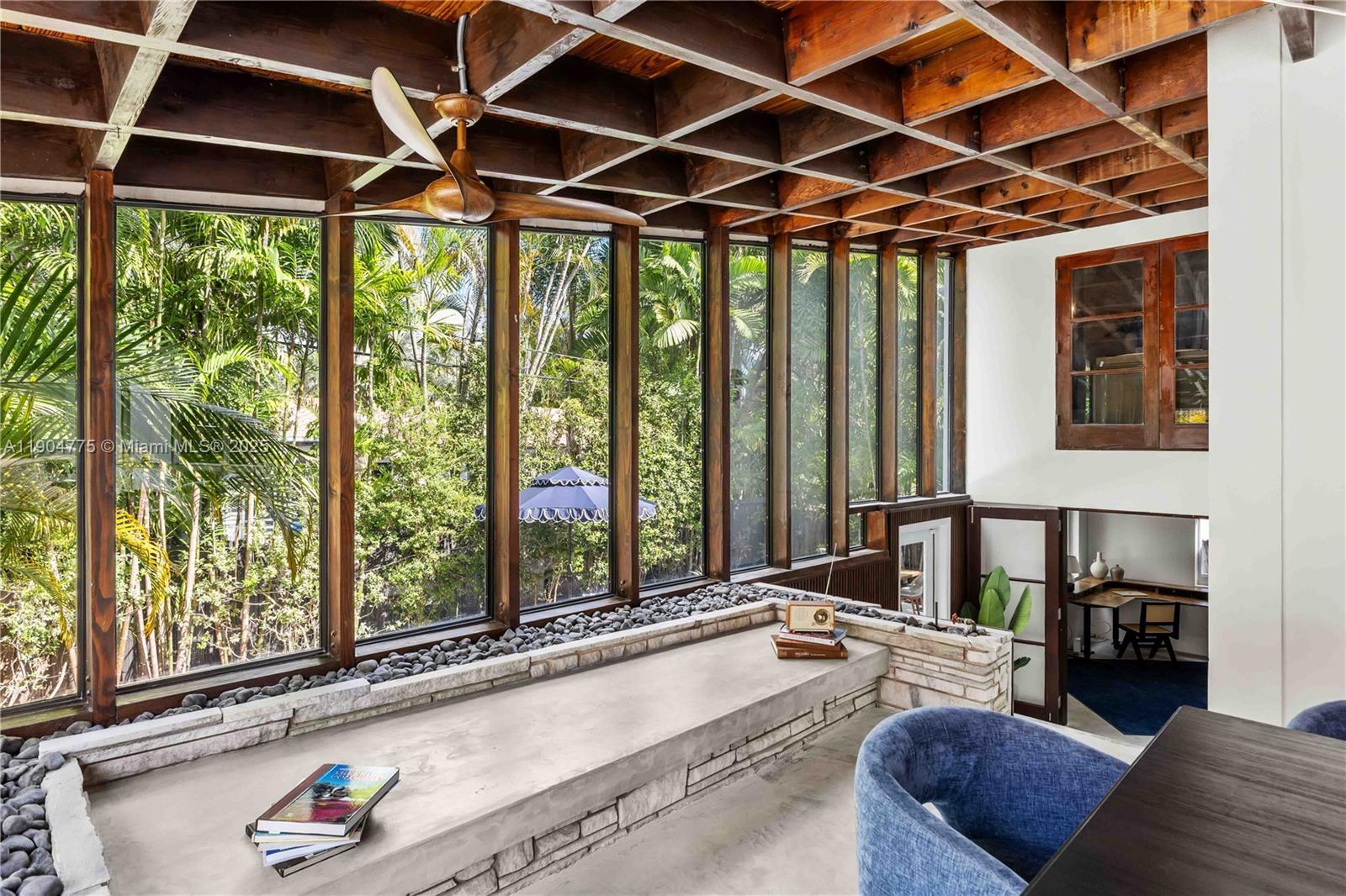 OPEN SATURDAY DECEMBER 13TH 11-1. A true architectural masterpiece in the heart of Shorecrest, this distinctive Mid-Century Modern residence designed by Architect George Jiri Hladik has been thoughtfully renovated while preserving its timeless character. Signature design details include vaulted wood-beamed ceilings, floor-to-ceiling glass, and an open split-level layout that blends natural light and space with effortless flow. Perfect for both relaxing and entertaining, the home’s interiors open to a lush tropical backyard oasis surrounded by mature landscaping for ultimate privacy. Modern upgrades include a newer roof (2020), impact doors, and a tankless water heater. A rare opportunity to own an architectural gem that lives like a piece of art.