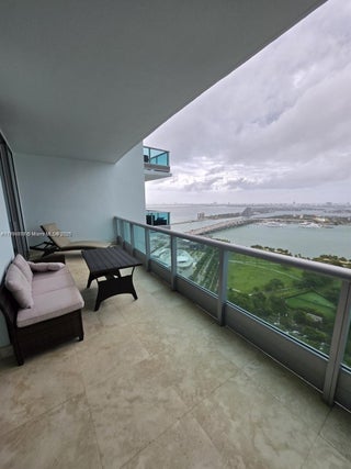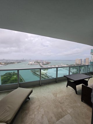 Excellent view of open Bay, Port of Miami, towards east and Miami towards west. 2 large bedrooms + den/3 full baths. Flow through unit with breathtaking direct Bay views and Miami Skyline (west views) 2 large terraces facing Miami's beautiful sunrise and sunset. Italian imported cabinetry and Miele, Subzero appliances. Marble floors, private elevator that leads to your foyer. State of the art fitness center, spa, movie theater. 5 star building W Surround Sound, 24 hour concierge, 24 hour valet service, LAP and Lounge pool, library, business center, billiard tables and management on site. UNIT IS RENTED UNTIL DECEMBER 30.