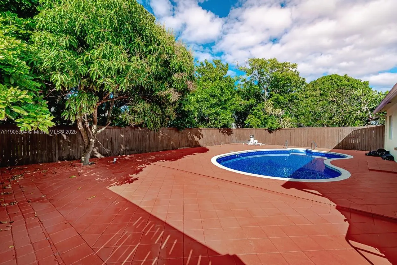 Spacious 4 bedroom, 2 bathroom corner property located in North Lauderdale. Expansive freshly painted driveway with plenty of parking. Turf lined front yard with a front porch and large trees to enhance this properties curb appeal. Upgraded kitchen with stainless steel appliances, granite countertops, dark stained cabinets and wine fridge. Hardwood floors in bedrooms with ceiling fans and tastefully remodeled bathrooms. Beautifully tiled patio with pool and large fruit trees that provide the perfect escape to enjoy true South Florida living. Washer dryer in laundry room. NO pets.