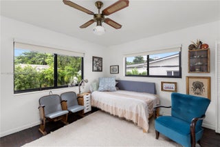 Updated single-family home in sought after neighborhood. 3 bedroom, 2 full bathroom w/spacious living room w/high ceilings & large screened back porch. Tile floors in the living room, kitchen & bathrooms and real wood floors in the bedrooms. New Impact windows & doors w/modern blinds including motorized in living room. Updated kitchen w/granite countertops & new stainless steel appliances: French door fridge, gas range, microwave & dishwasher. Great utility room w/full sized washer & dryer & storage. New central air conditioning. Oversized landscaped & fenced yard with well water for gardening. Plenty of parking including carport. Pets welcome. In beautiful picturesque neighborhood with sidewalks, walking distance to fantastic shops & restaurants, public transportation, & great schools.