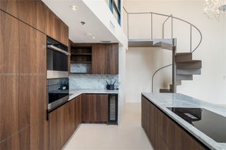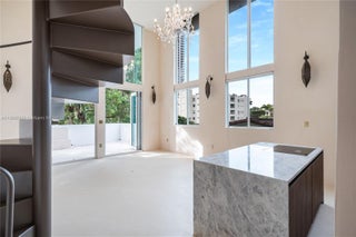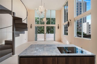 No expense was spared in this meticulously designed loft duplex in a boutique building by Chad Oppenheim. Soaring 20’ ceilings fill the open living area with natural light, while custom bi-fold glass doors open to a private terrace. The upstairs primary suite offers an Italian-inspired walk-in closet and spa-like bath. Both bedrooms feature private balconies. Highlights include concrete-inspired floors and walls, handmade Egyptian sconces, Wi-Fi roller blinds, and a stainless-steel spiral staircase. The solid natural marble kitchen, hand-carved marble bathtubs, and sinks complement Shinnoki cabinetry, JennAir appliances, and Brizo fixtures. Two parking spaces and a heated rooftop pool complete this rare offering.