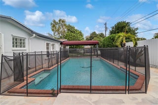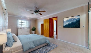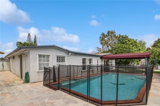 Nestled within the desirable Westwood Estates on an oversized lot, this property features comfortable living, ceiling fans in every room, and the added benefit of in-law quarters complete with a separate bathroom. The primary suite offers a luxurious retreat with a Jacuzzi tub and an enclosed shower area featuring double shower heads. Practical amenities include a gas water heater, and the expansive outdoor space is an oasis with a pool featuring a waterfall, colored lighting, and a security fence, all enhanced by two avocado trees and one established Mamey tree. This wonderful home is conveniently located close to major roads and shops and presents a perfect opportunity to add your personal touch.