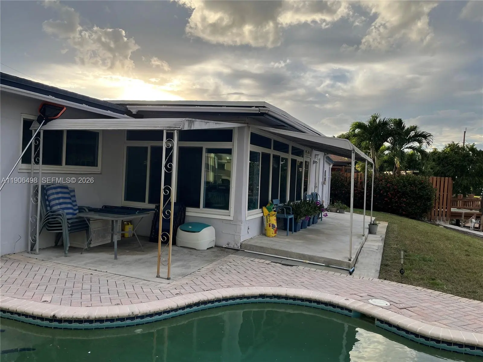 Attention Boaters!!! 100 Ft. Seawall with Ocean Access! 3 bedroom 2 bath spacious home includes a huge open back room off the dining area with full view of the canal plus a Butlers pantry off the kitchen, a laundry room with space for storage and an additional exterior door, possibly for your future cabana bath!. Private Master Bedroom with Bath and Walk-In Closet on one side of living room, additional 2-Spacious Bedrooms with Bath between on the other side. Complete high impact/sound proof windows and doors and covered carport. Good size yard with in-ground pool uniquely shaped to fit perfectly on the side yard! Melaleuca Gardens is a Hidden Gem in Dania Beach. NO HOA! Quiet community where neighbors know each other, minutes from everything including Shopping & Restaurants, Dania Pointe, Airport, Interstate, Beach, and minutes to the Ocean from your boat docked right behind your home. Made with good solid Miami-Dade Pine. Clean and move in ready! Very flexible with showing times!