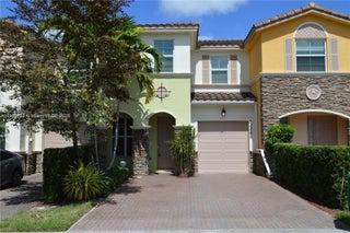 Bella Terra Best!! Don't Miss out on this beautiful 3 bed 2.5 bath townhome with excellent location! Close to Nova University, tons of shopping, Property features 18x18 tiles throughout first floor and beautiful modern laminate wood flooring in staircase and upstairs. Formal living room is inviting and perfect for entertaining. Contemporary granite kitchen counters with dark wood cabinetry, GE stainless steel package all overlooking the ample family room. Hurricane Impact Windows and Doors, Dining room easily holds large table. The sliding glass door from the dining room goes out unto the private patio. Master suite is spacious with his and her vanity sinks, luxurious roman tub and separate shower. Master closet has custom organization system. Community offers beautiful pool area and gym.