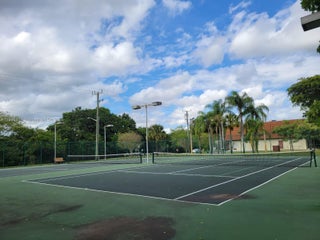 Welcome to this exceptional townhome in a sought-after Davie community! Features brand new impact sliders and new AC unit for comfort and efficiency. The HOA maintains the roof and building exterior including insurance for worry-free living. Entertain guests in your large private courtyard—perfect for gatherings and relaxation. Inside, enjoy a spacious primary bedroom with two large closets, a beautifully renovated primary bathroom, and full-sized washer and dryer. Community amenities include basketball and tennis courts, sparkling swimming pool, BBQ area, playground, and scenic walking trails—something for everyone! Located in an excellent school district, this home offers the perfect blend of comfort, convenience, and lifestyle. Don't miss this opportunity!