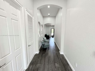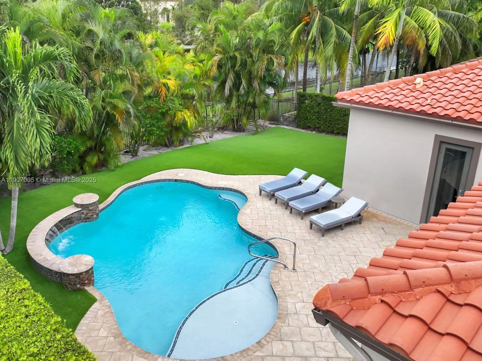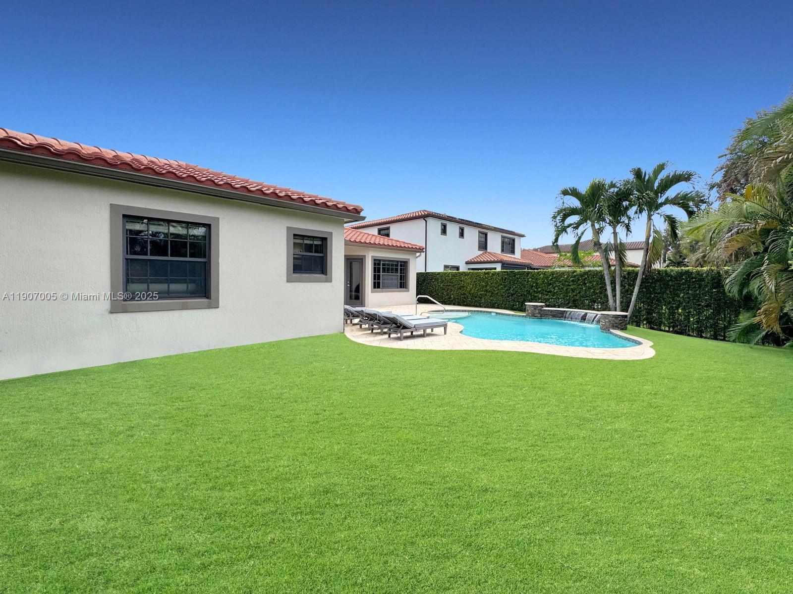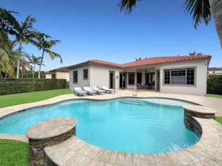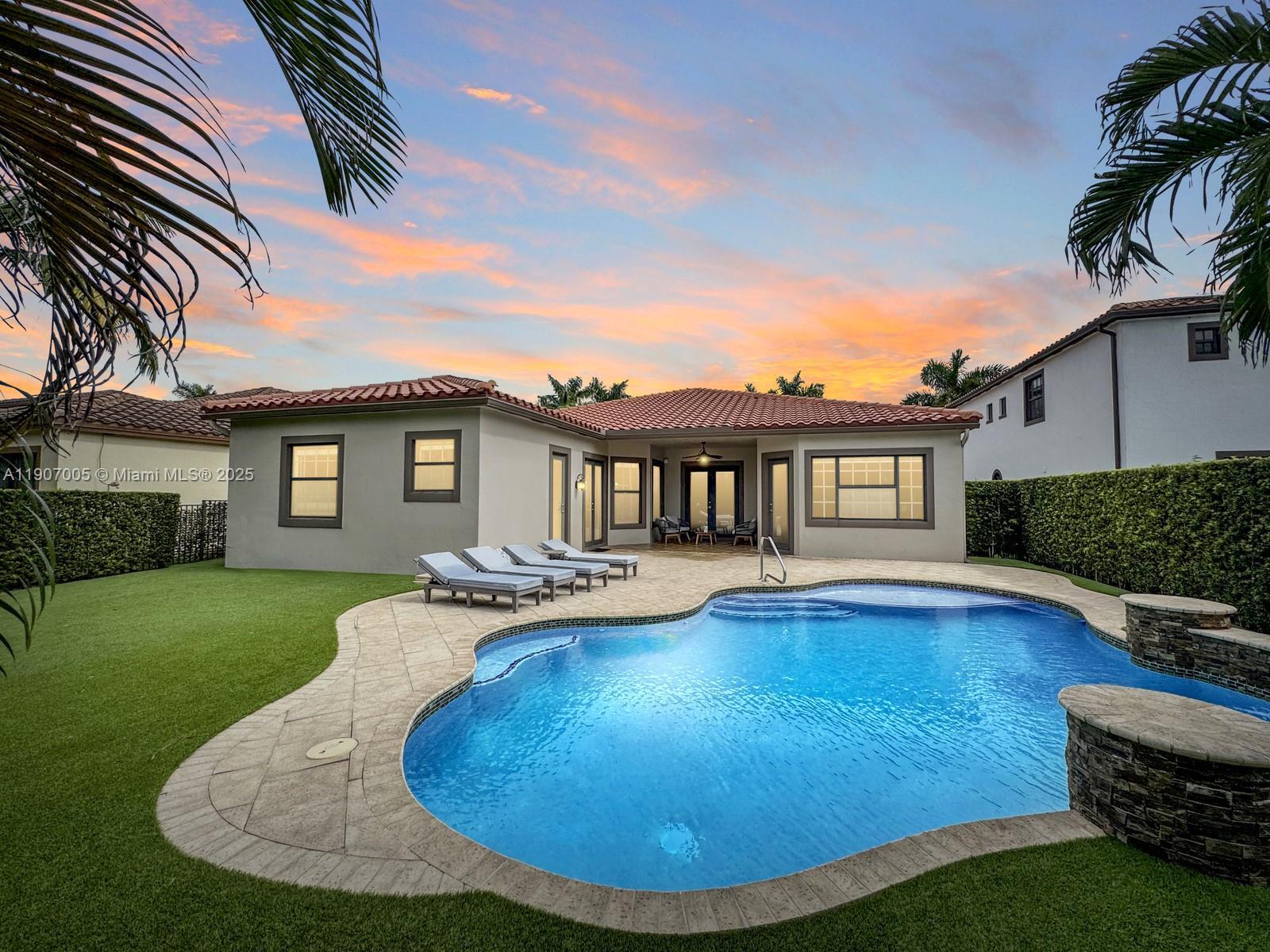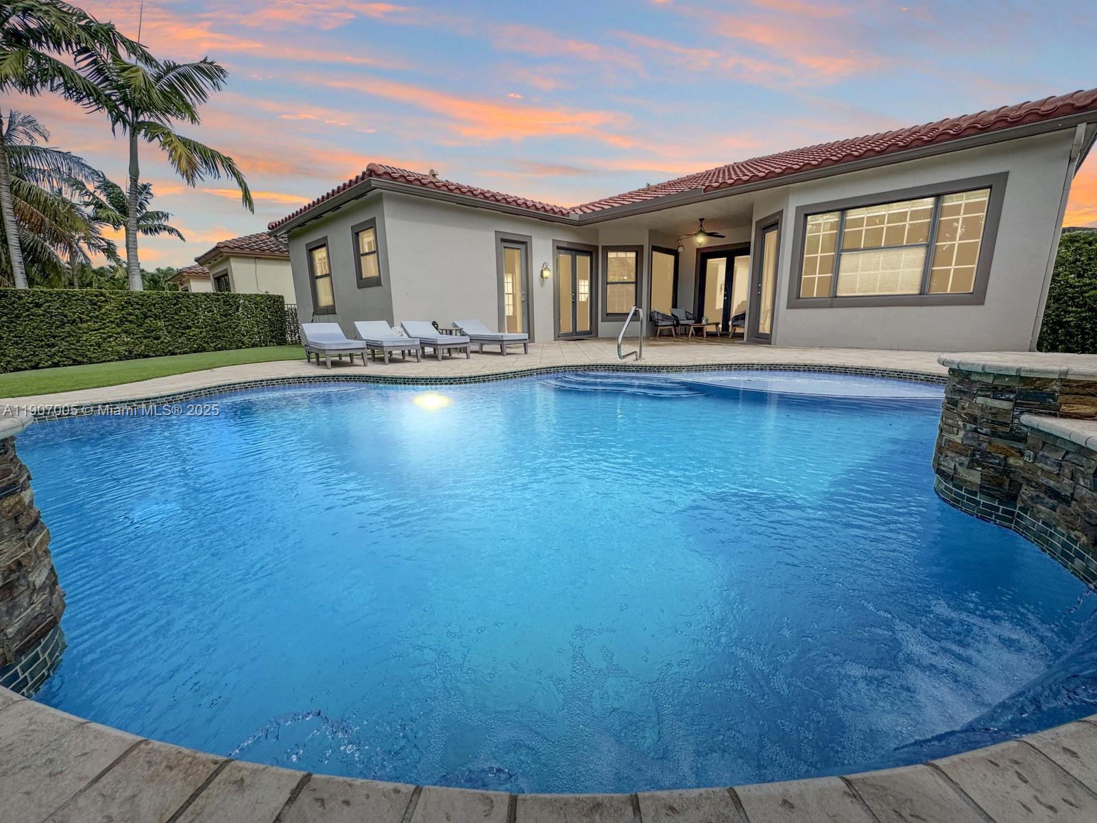 Discover luxury living in the sought-after manned gated community of Estada in Cooper City. This elegant 4 bed, 3 bath home features a flexible 3 way split floor plan. Step into a beautifully designed home with laminate wood floors throughout. The kitchen has white wood-style cabinets, granite countertops & stainless steel appliances. The expansive primary suite offers true serenity, featuring custom walk-in closets & a luxurious bath with dual vanities, shower & a jetted soaking tub. Enjoy your private backyard oasis with heated pool, waterfall, turf yard, & canal view. Additional features: Impact windows/doors, new AC, water heater & pool heater. Walking distance to houses of worship. Monterra resort-like amenities include clubhouse, fitness center, sports courts, playgrounds, and more, for a fee.