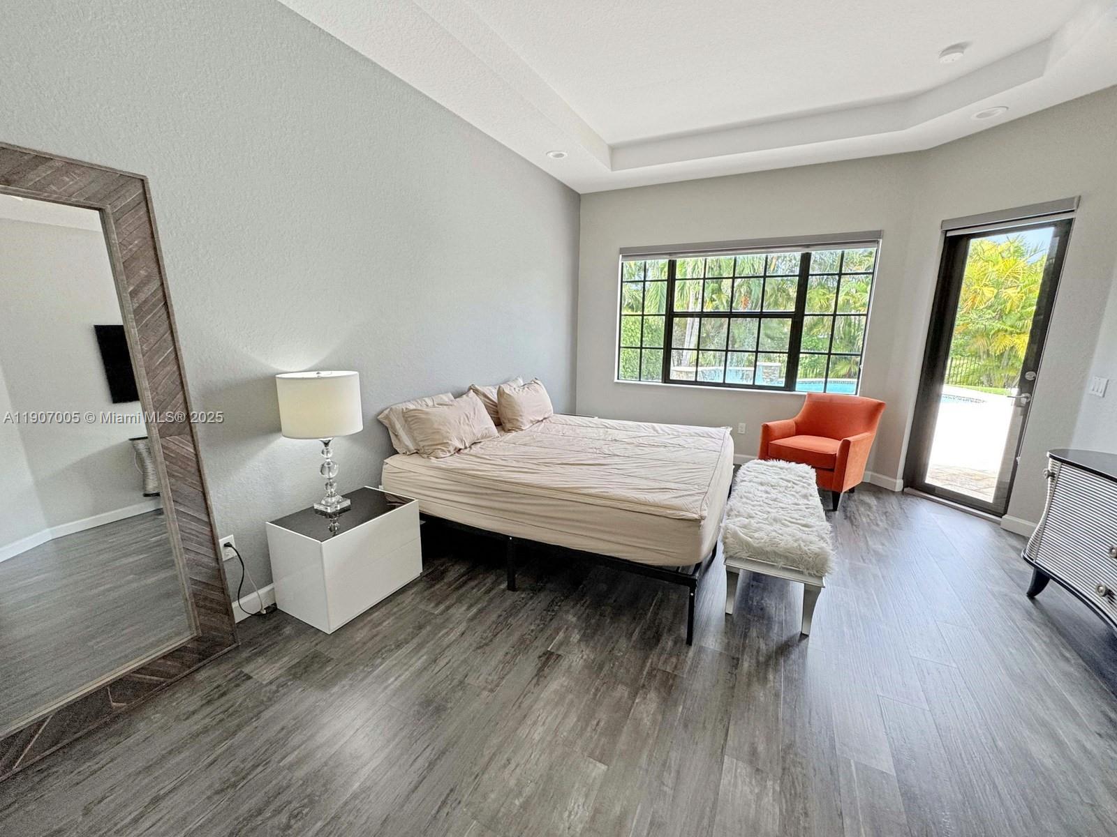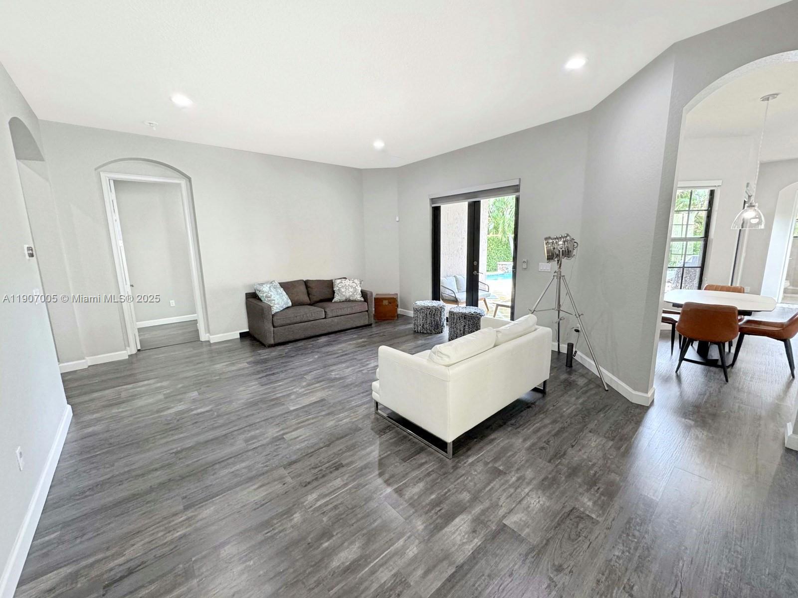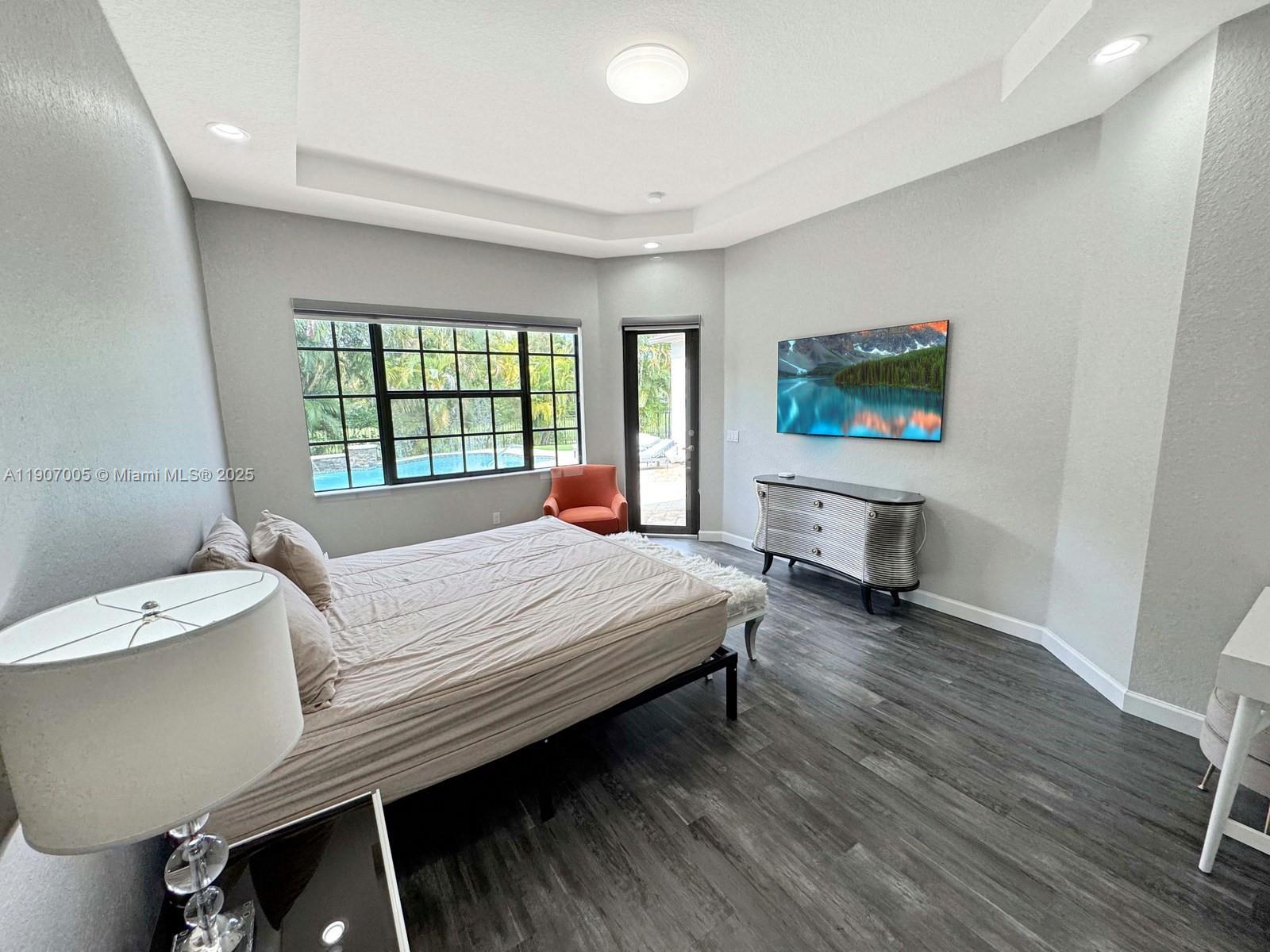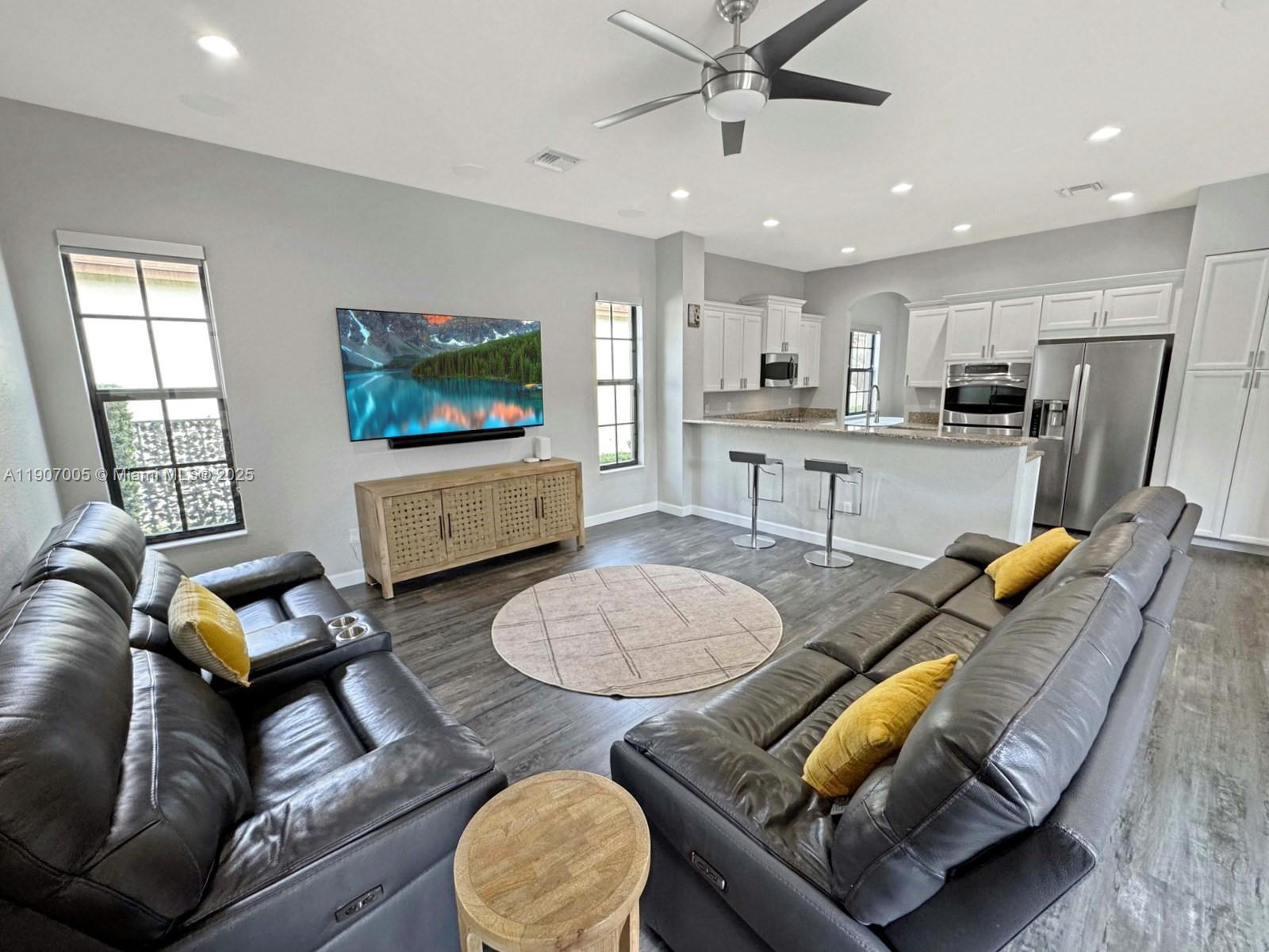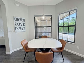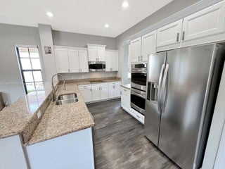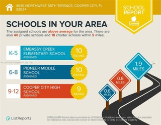 Discover luxury living in the sought-after manned gated community of Estada in Cooper City. This elegant 4 bed, 3 bath home features a flexible 3 way split floor plan. Step into a beautifully designed home with laminate wood floors throughout. The kitchen has white wood-style cabinets, granite countertops & stainless steel appliances. The expansive primary suite offers true serenity, featuring custom walk-in closets & a luxurious bath with dual vanities, shower & a jetted soaking tub. Enjoy your private backyard oasis with heated pool, waterfall, turf yard, & canal view. Additional features: Impact windows/doors, new AC, water heater & pool heater. Walking distance to houses of worship. Monterra resort-like amenities include clubhouse, fitness center, sports courts, playgrounds, and more, for a fee.