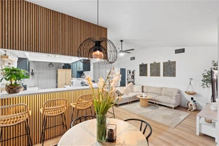 Welcome to this beautifully remodeled 3-bedroom, 2-bathroom corner unit offering 1,382 sq ft of move-in-ready open living space with serene canal and garden views. Discover a transformed interior featuring premium wood laminate flooring throughout, elegant wood wall trims, and crisp 6-inch white baseboards. The kitchen has been updated with refurnished cabinets and countertops. Smooth, modern ceilings (popcorn removal completed) and fresh paint in versatile neutral tones provide the perfect canvas for any décor style. This well-maintained townhome combines modern upgrades with comfortable living. Roof installed in 2006.