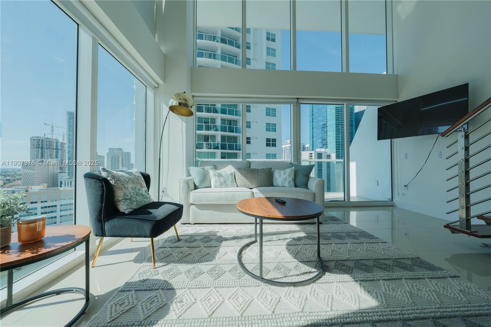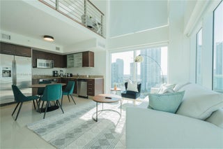 Exquisite 2 bed,2 bath two-story loft-style Brickell condo with skyline Miami River and City views. The unit is tastefully furnished and features two balconies with panoramic views from floor-to-ceiling windows, kitchen with stainless steel appliances. The building is equipped with exceptional amenities, including two swimming pools, a state-of-the-art fitness center, concierge services, valet parking, 24/7 security, and more! Convenient Location next to plenty of shops and restaurants, next to Brickell City Center Mall and Metro mover station.