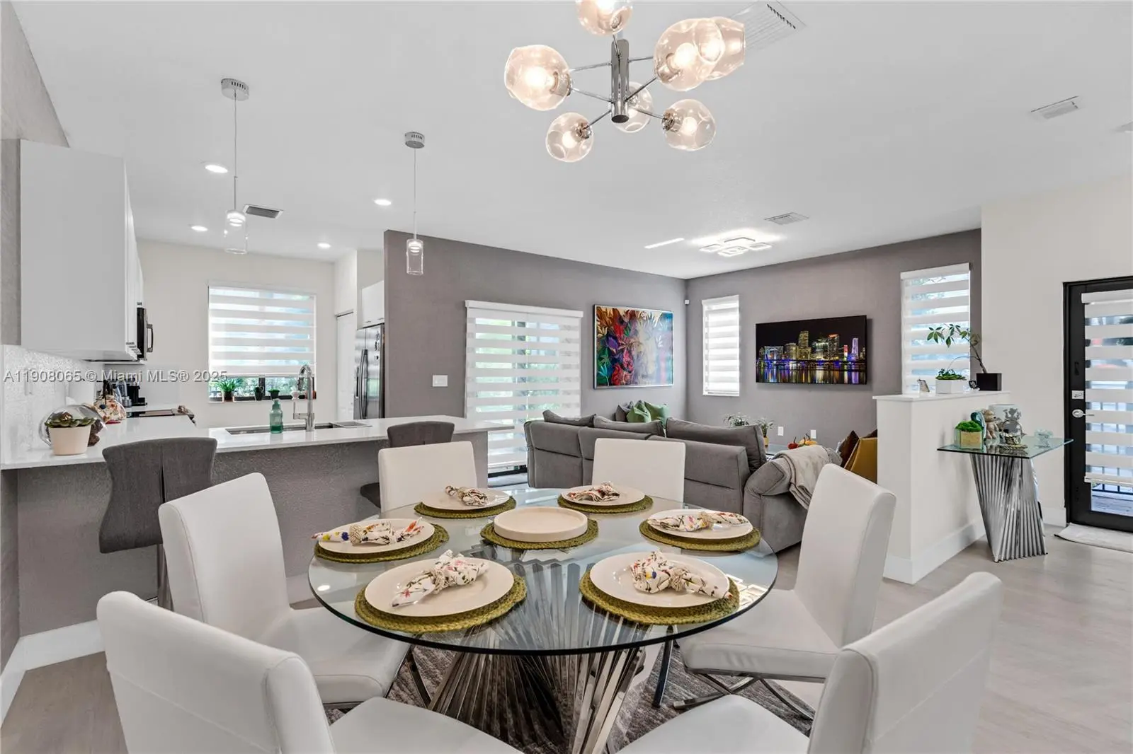 Beautifully maintained 3BR/3.5BA corner townhouse in Urbana at Downtown Doral offering 1,894 sq. ft. of living space. The first floor features an open layout with a modern kitchen, breakfast island, stainless steel appliances, dining area, and spacious living room. 2-car garage with tile floors and guest half bath. Upstairs includes vinyl flooring, laundry room, and three bedrooms each with a private ensuite bath. The primary suite boasts a private balcony and walk-in closet. Enjoy impact windows and doors, resort-style amenities, and a prime location steps from Publix, restaurants, and entertainment.