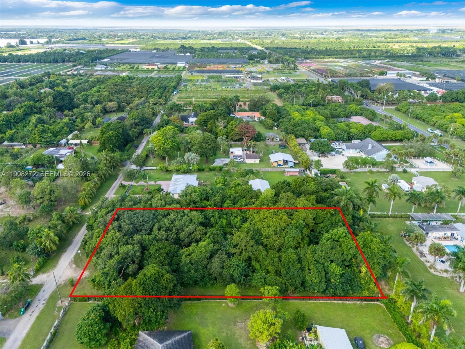 REDLAND 1.13 ACRE VACANT LAND PARCEL SITTING ON A QUIET STREET. THE PARCEL IS 162 FT OF FRONTAGE & 309 FT OF DEPTH, HIGH & DRY IN FLOOD ZONE AH9. SITTING OFF OF SW 197 AVE & SW 234 ST SURROUNDED BY SINGLE FAMILY HOMES & LOCAL NURSERIES, THE POSSIBILITIES ARE ENDLESS ON THIS VACANT PARCEL. REDLAND IS AN AGRICULTURAL COMMUNITY IN THE HEART OF MIAMI.