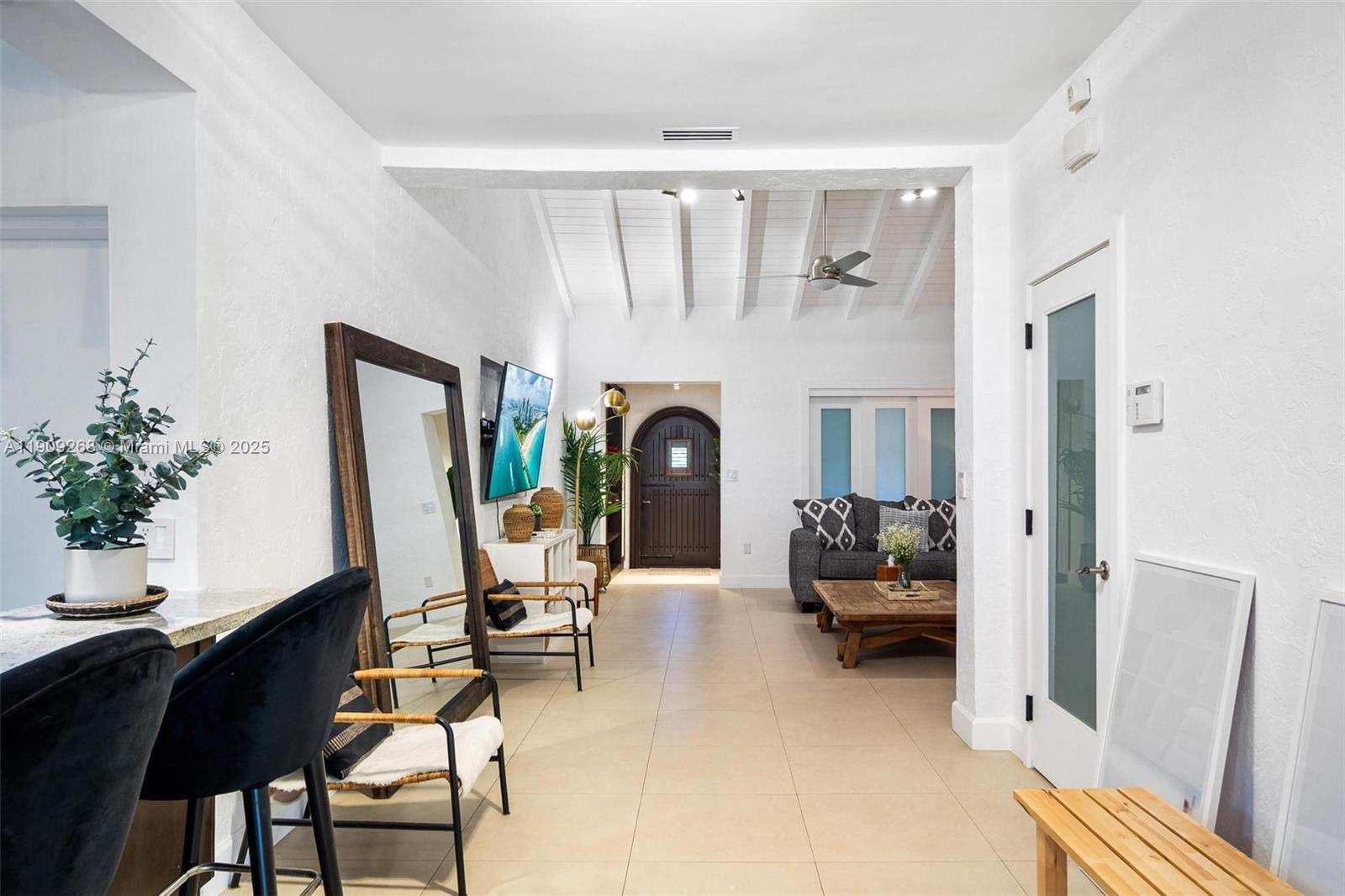 Belle Meade waterfront—deep canal with direct access to Biscayne Bay and the ocean. Remodeled 4BR/2BA with high exposed-wood ceilings, gourmet kitchen, and wide water/garden views. Outdoor living shines: screened porch, expansive deck, pool, spa, and lush landscaping. Approx. 50 ft of frontage with full dock. Set inside a 24-hr guarded, historic gated enclave offering rare privacy and tropical surroundings, minutes to the Design District, Downtown, and beaches. Surrounded by new construction—strong upside and rental potential. Easy to show.