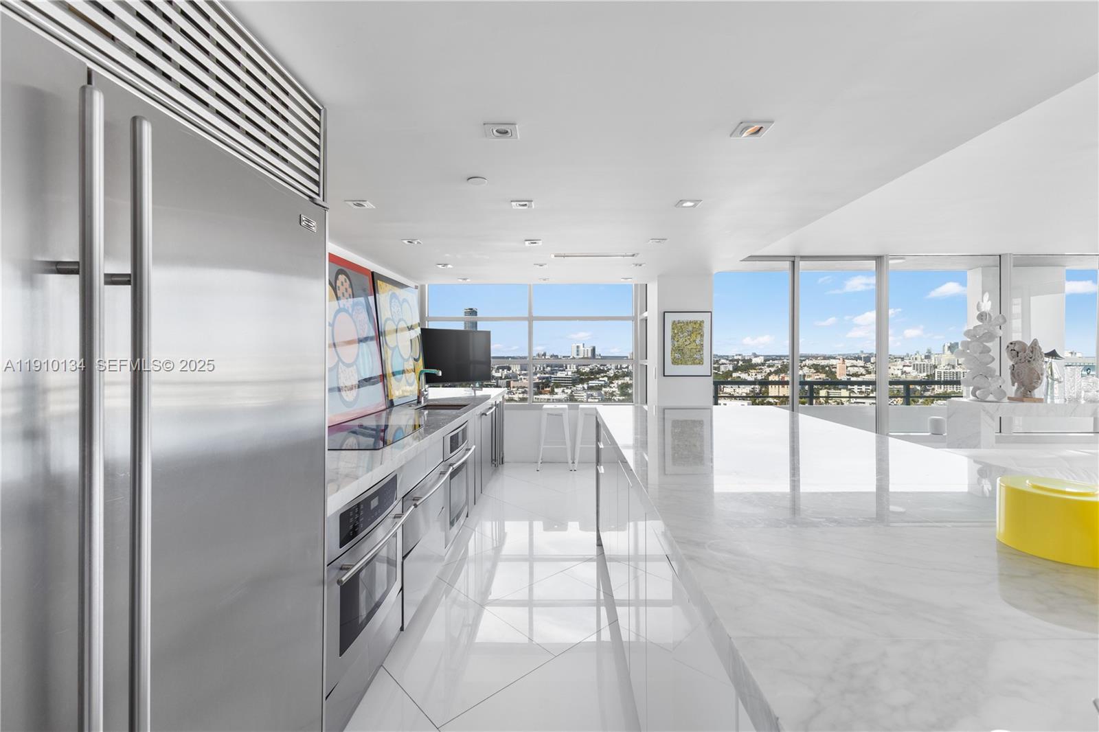 Location and Lifestyle are delivered in this breathtaking 23rd-floor corner residence in South Pointe Tower. Unparalleled direct ocean + city views through floor-to-ceiling glass windows. Every room opens to private 90 ft wraparound terrace. This designer open loft (re-imagined from a 2 bed + den) delivers a luxurious modern aesthetic with white glass flooring throughout and Carrara marble finishes. The open-concept chef’s kitchen features sleek stainless steel appliances + an impressive 15-foot Carrara marble island — perfect for entertaining. The residence boasts 2.5 spa-inspired Carrara marble bathrooms and includes two indoor parking spaces. Building just completed a $30 million master renovation (paid in full). Private 2 car garage available seperately - perfect for your exotic cars. This captivating open loft-design is easily converted back to a traditonal 2 bedroom + den layout and we have available contractors upon request.