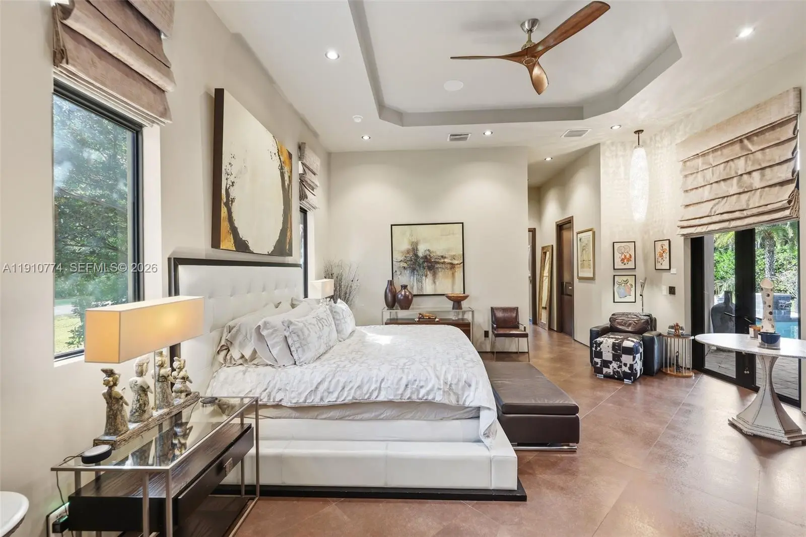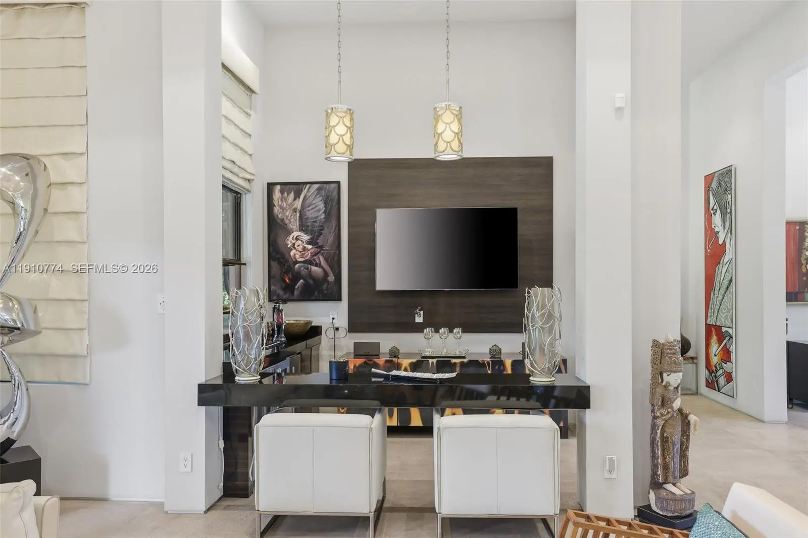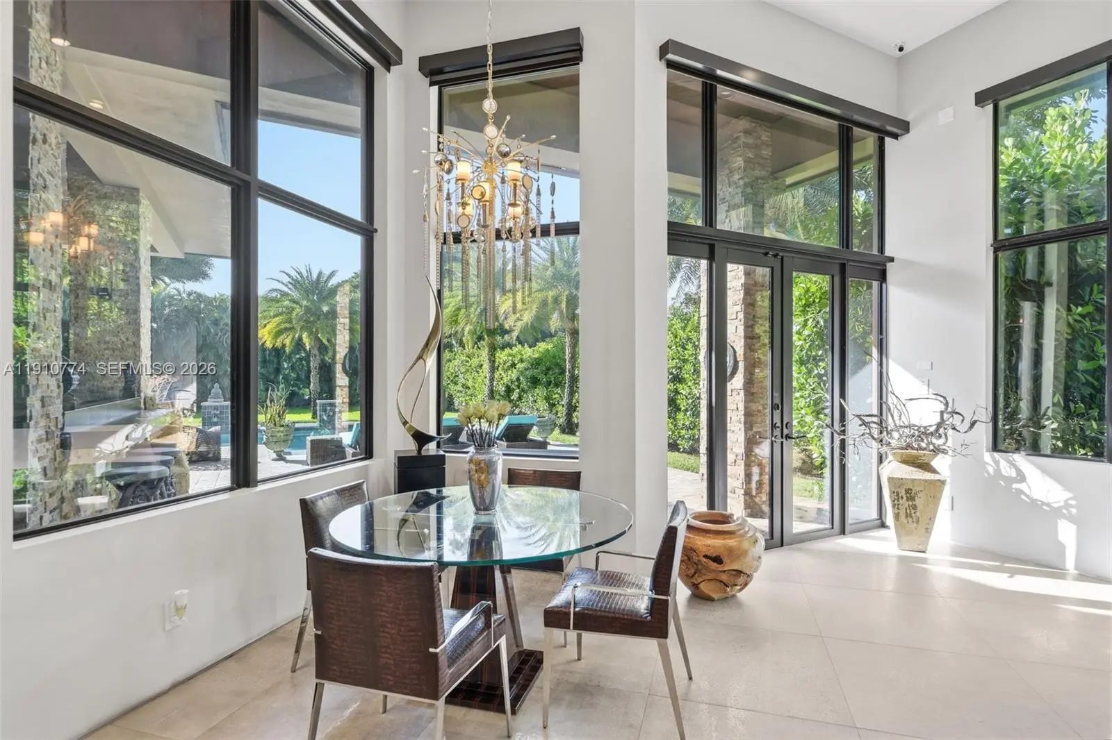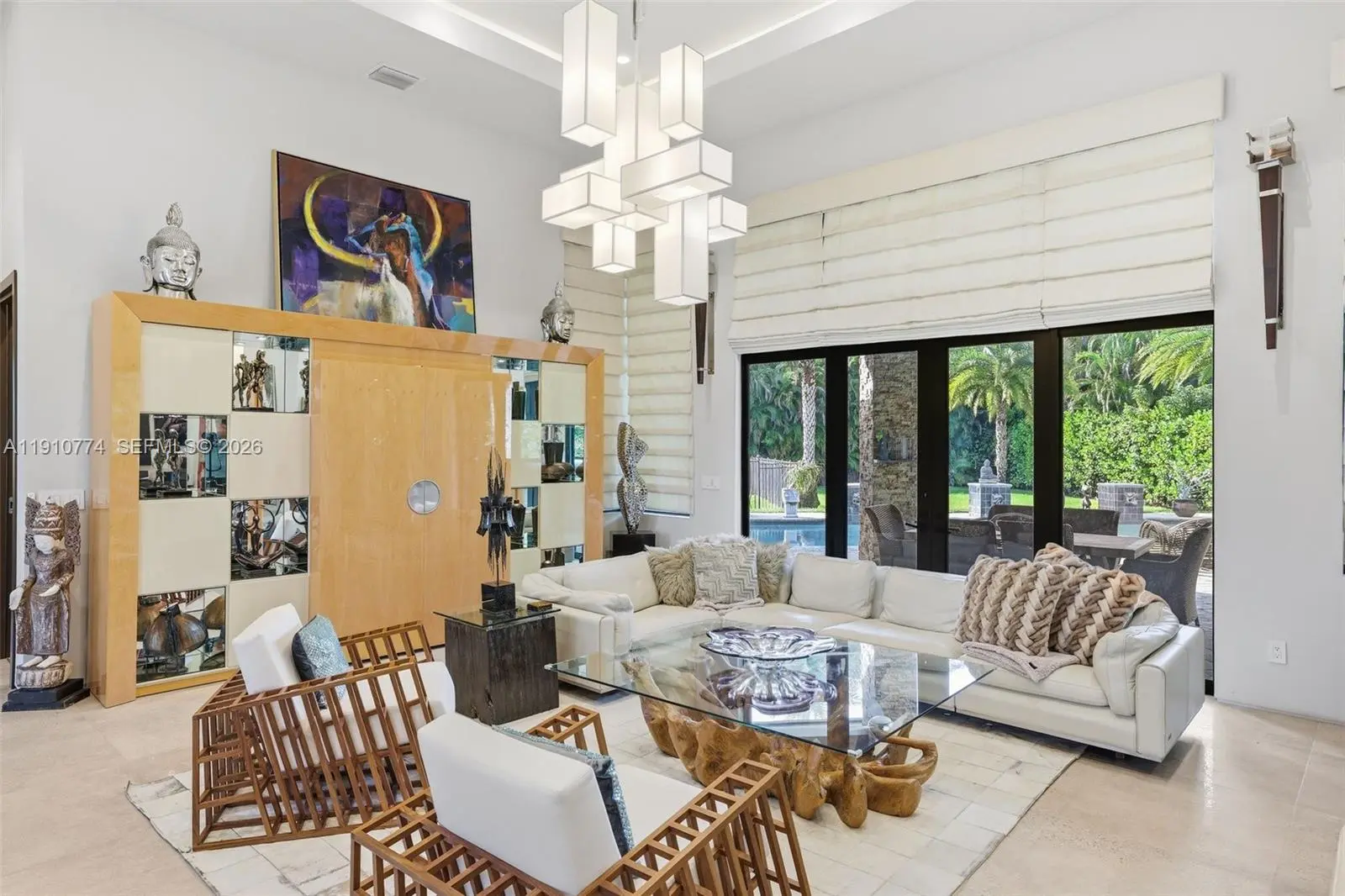 Modern luxury with an artistic flair. This 4-bedroom 4-bathroom all-in-one home is perfect for those who love to entertain and unwind without ever leaving. The Hans Krug European kitchen stuns with Macassar ebony cabinetry, Miele appliances, built-in coffee maker, large island, prep sink, and walk-in pantry. Impact windows and doors fill the home with natural light and outdoor greenery, while custom interior doors add elegance and flow. Enjoy a summer kitchen, full indoor wet bar, volume ceilings, surveillance system, and a spacious three-car garage. The primary suite offers dual closets, vanities, and toilet rooms, plus a freestanding tub and walk-in shower for a true spa experience. Ideally located near American Heritage School, fine dining, and the Shops at Sawgrass.