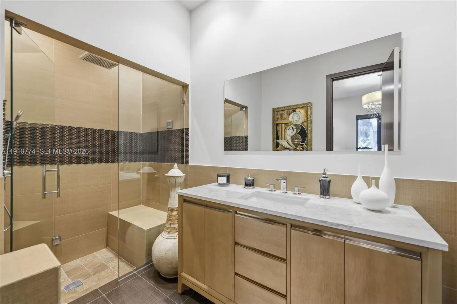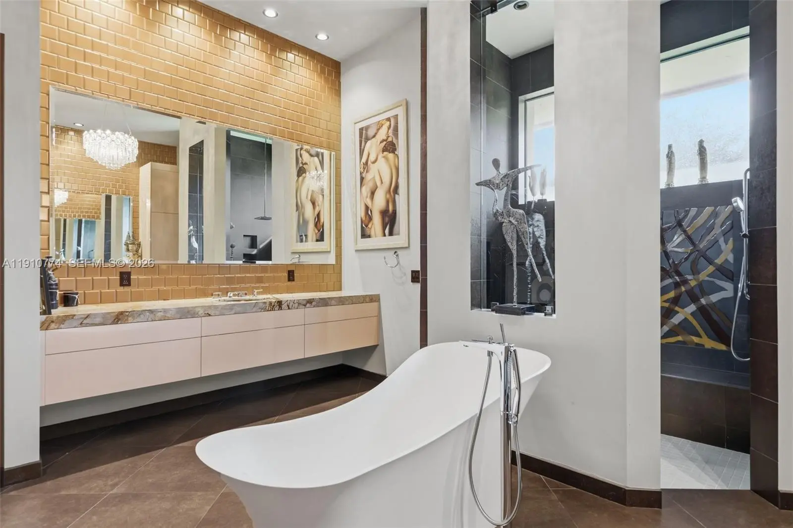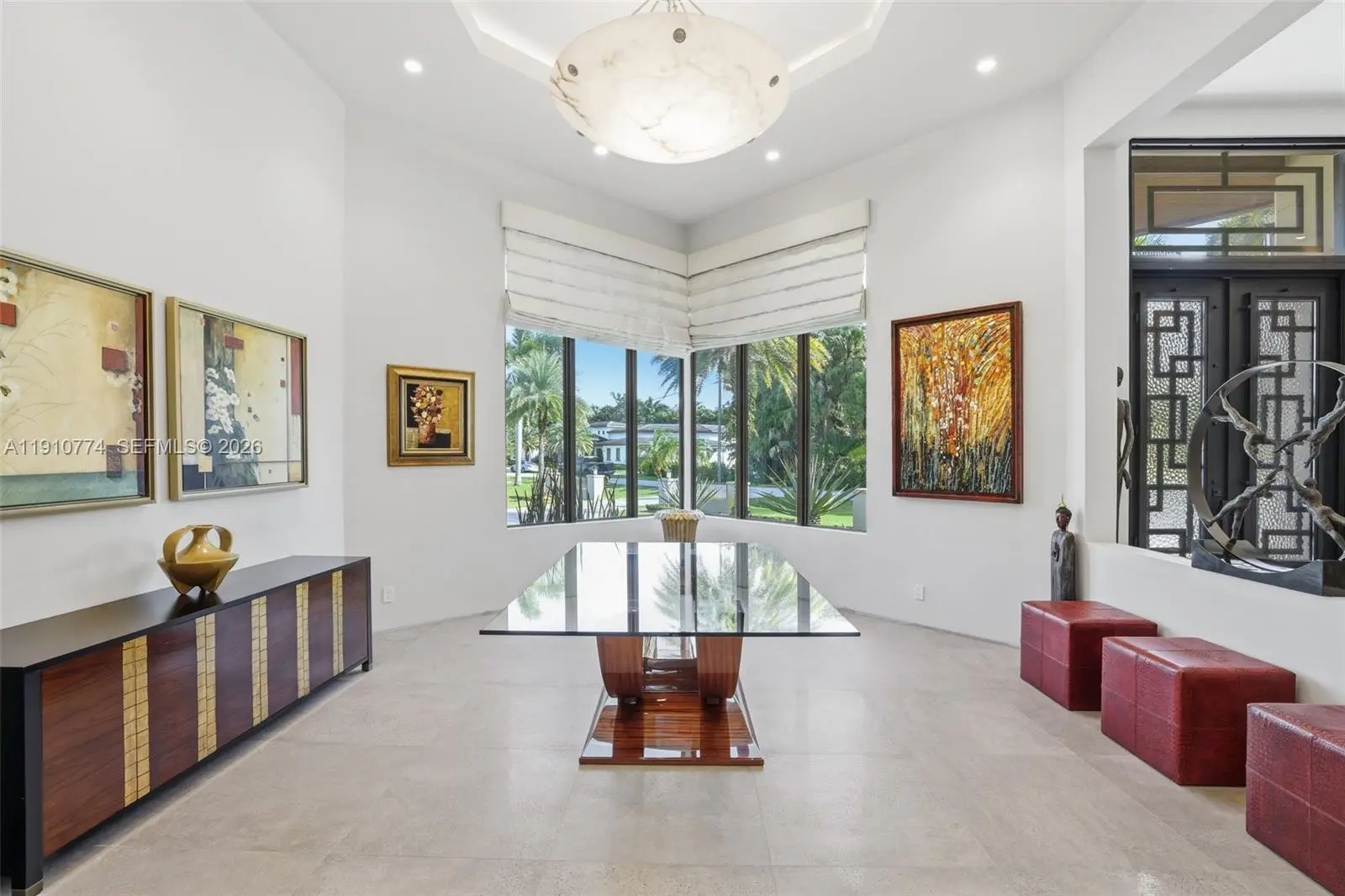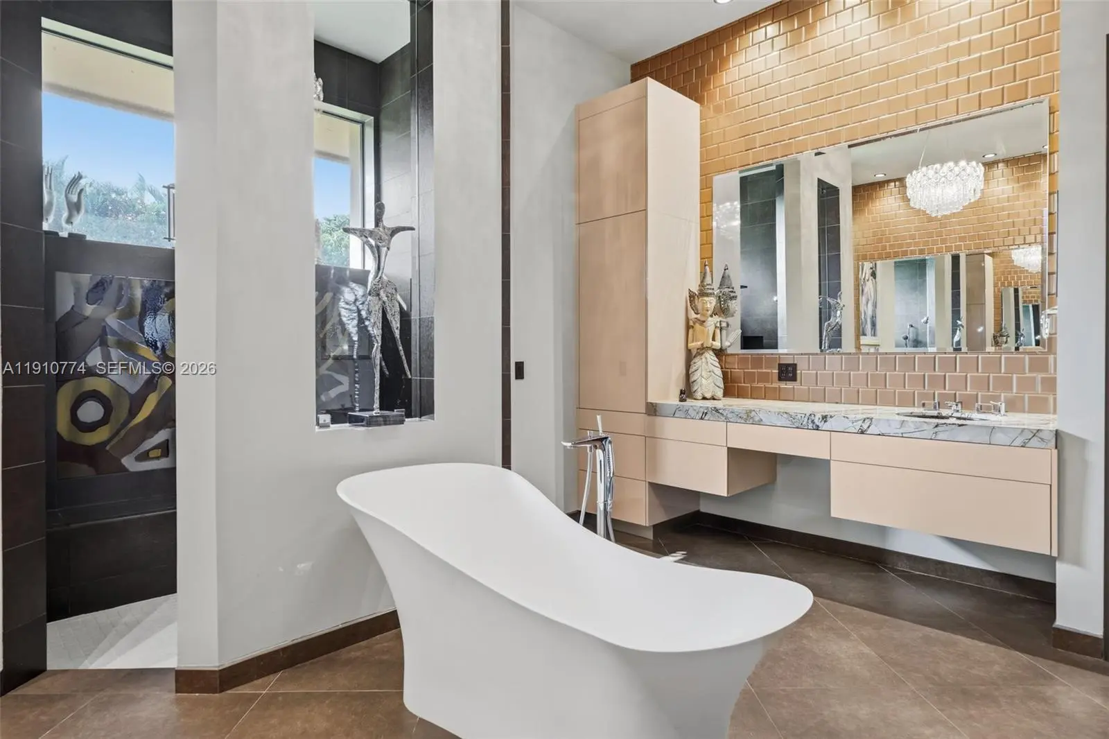 Modern luxury with an artistic flair. This 4-bedroom 4-bathroom all-in-one home is perfect for those who love to entertain and unwind without ever leaving. The Hans Krug European kitchen stuns with Macassar ebony cabinetry, Miele appliances, built-in coffee maker, large island, prep sink, and walk-in pantry. Impact windows and doors fill the home with natural light and outdoor greenery, while custom interior doors add elegance and flow. Enjoy a summer kitchen, full indoor wet bar, volume ceilings, surveillance system, and a spacious three-car garage. The primary suite offers dual closets, vanities, and toilet rooms, plus a freestanding tub and walk-in shower for a true spa experience. Ideally located near American Heritage School, fine dining, and the Shops at Sawgrass.