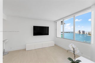 Incredible renovation of this high floor residence w/ soaring Riviera like views of Biscayne Bay! No expense spared in this immaculate furnhised home that includes a great layout with a gleaming open kitchen, separated bedroom area with en-suite bath and plenty of light. This full service bayfront building just completed a total transformation and offers an amazing new resort style pool & amenity deck w/ grill, jacuzzi and marina, very large Fitness Center on-site convenience store, spa & hair salon. Perfect central location walking distance to shopping, dining, Lincoln Road, beach plus easy access to causeway and all major highways and MIA! Cable/Internet Included