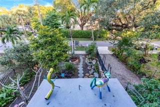East Coast meets West Coast style with vibrant, retro flair and lush, natural landscaping with exotic fruit trees ***including banana, ice cream mango, loquat and chocolate pudding trees***. Unmatched Security & Investment in Prime Fort Lauderdale. This one-of-a-kind, concrete-stronghold home is 100% Hurricane-Impact and custom-built. The Key Features: Concrete walls, roof, and floors with commercial steel reinforcement. Includes a fully enclosed Bunker-Style Safe Room with a shower, toilet & Sink along w/ a separate entrance. Dramatic Design: 14' ceilings, custom 10' entry door, open-plan loft bedroom, and 24' high ceiling in the living area. Outdoor Living: Multiple terraces/patios, including a tranquil Primary Suite sun deck, a fireplace-view patio, and a zen walkway leading to an outdoor fire pit. Fully-engineered ADU PAD (Accessory Dwelling Unit) is already poured with a separate electric panel—ready for immediate build-out (rental unit/in-law suite. Future Plans Available: Architectural plans exist for a 3rd floor, elevator addition, and downstairs bathroom. Prime Location: Smack in the perfect part of Ft. Lauderdale—all major points (Marina Mile, I-95, FLL Airport, Las Olas, Beach, Fishing) are just 15 minutes away. Invest in a legacy of Security, Quality. NOT a cookie-cutter. High elevation @ 2361 SW 18th Ave, Ft Lauderdale, FL LOW Electric Bills!
