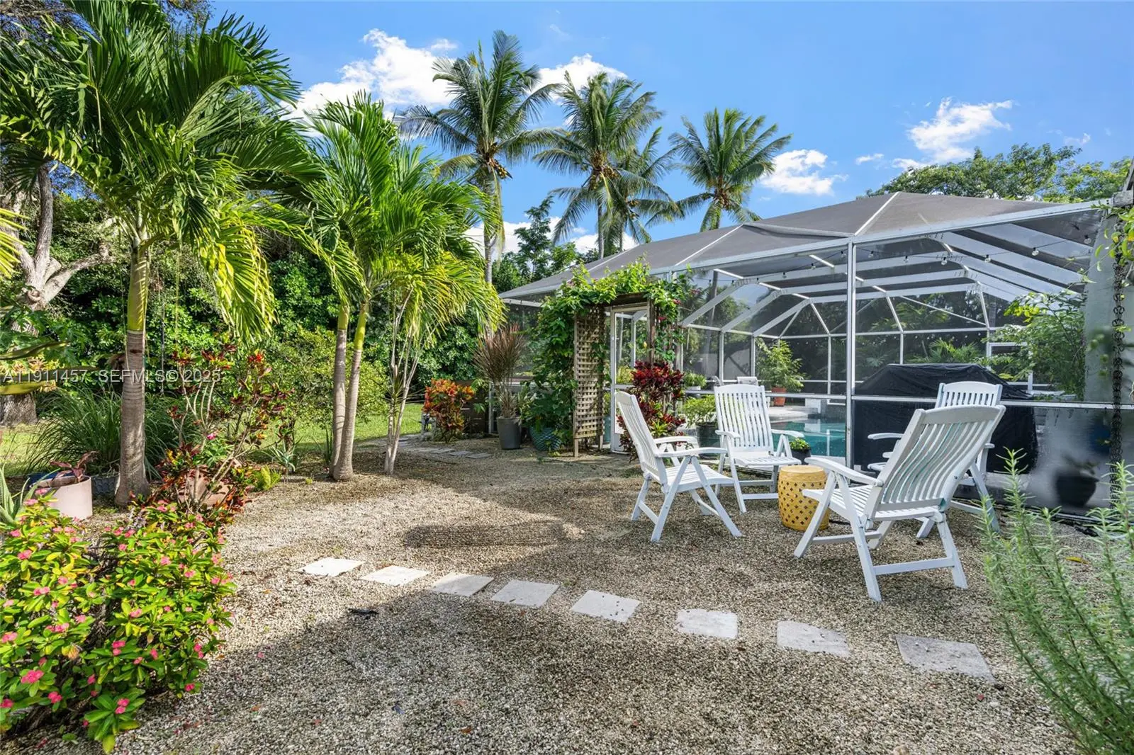Impeccably updated and thoughtfully designed one-story 3-bedroom, 2-bath residence in a wonderful neighborhood. Upgrades include a Tesla solar panel system with backup batteries, solar water heater, new AC, and fully renovated bathrooms. Refined marble and wood floors flow throughout, complementing the high-end eat-in kitchen with custom cabinetry and a wall-to-wall storage unit. Step into a resort-style backyard—an exquisite screened-in pool oasis with jacuzzi, oversized covered terrace, and lush tropical landscaping, perfect for both relaxing and entertaining. Additional features include a impact doors and windows, newer roof, paver driveway, dual storage areas, and a prime location near top-rated private and publics schools and the Deering Estate.