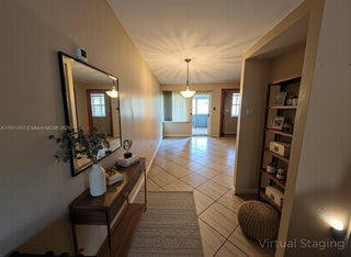 Spacious 2-bedroom, 2-bath villa-style condominium in the heart of Miami Gardens. Features a beautifully updated kitchen with granite countertops, ample cabinet space, and a breakfast bar. Enjoy a large screened patio overlooking a private fenced backyard—perfect for relaxing or entertaining. The home includes tile floors throughout, a walk-in closet, and in-unit laundry. Two assigned parking spaces conveniently located near the entrance. Quiet community close to major highways, shopping, and dining. Roof is 3 years old.